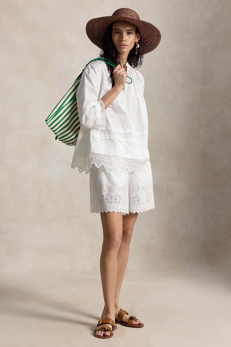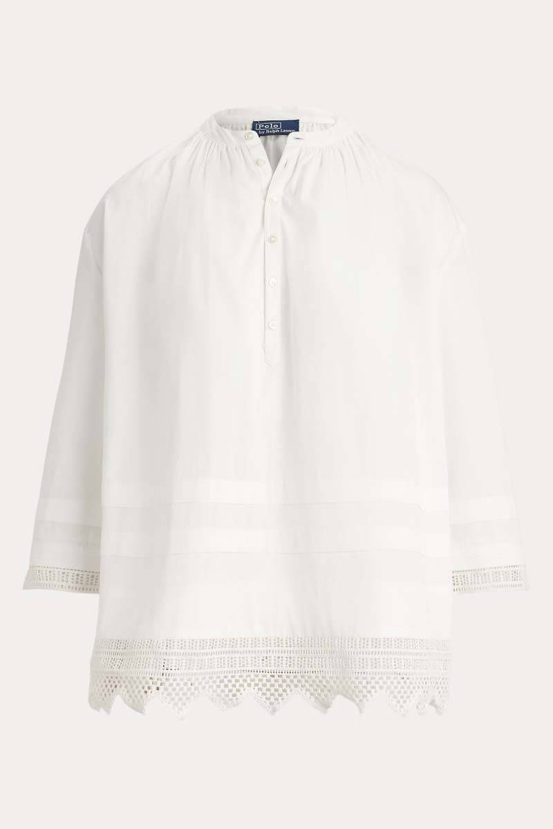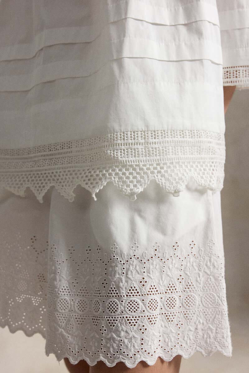 Crochet-trim cotton shirt, White