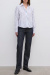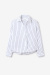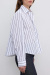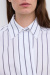 En randig skjorta i ekologisk bomull som sätter tonen för en avslappnad men stilsäker look. Bär med skräddade byxor, loafers och röda läppar. En skjorta som gör det enkla intressant.Randig skjorta i ekologisk bomull med kort modell, krage, lös passform, asymmetrisk knäppning fram med knappar från Dagmar.