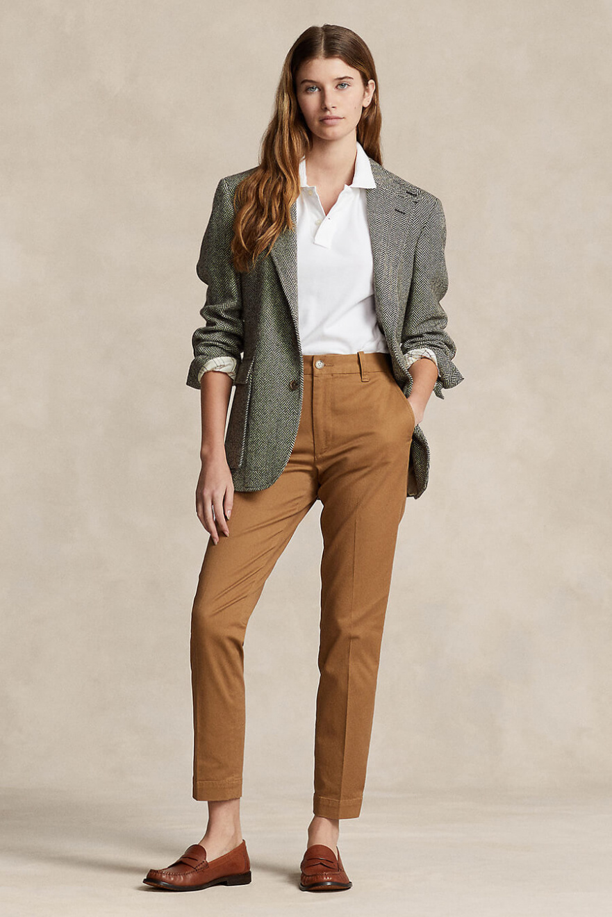 Dessa bruna chinos i smal passform kombinerar sofistikerad stil med komfort. Perfekta för både jobb och fritid, de ger en modern, elegant silhuett och är ett mångsidigt garderobsmåste.Chinos i en bomullsblandning med smal passform, medelhög midja, ankelkorta ben och fickor i sidan från Polo Ralph Lauren.