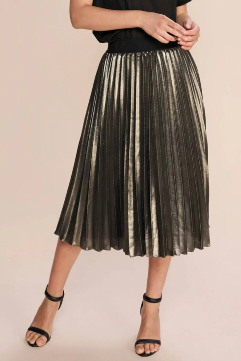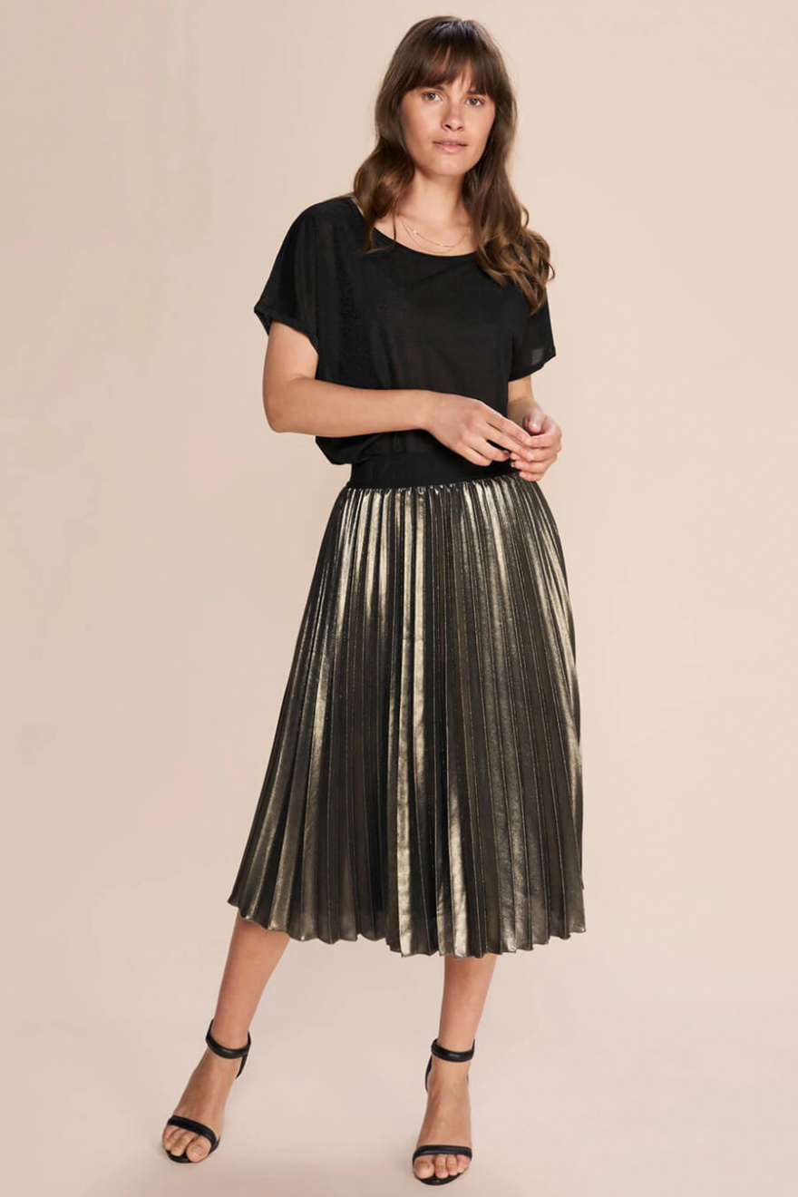 Skimrande plisserad kjol med elastisk midjeband, A-formad och vadlång från MosMosh.- 100% Polyester