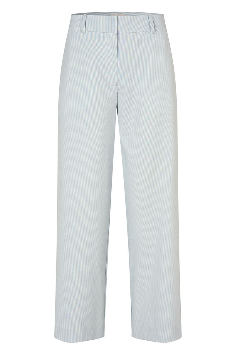 Luftiga, raka byxor med subtila ränder – perfekta för dagar när du vill känna dig både uppklädd och avslappnad. Den ljusblå nyansen gör dem lika somriga som tidlösa. Bär dem med en linneblus eller din favorit-T-shirt.Byxa i en viskosblandning med medelhög midja, ankellängd, vid rak modell, normal i storleken och fickor i sidan från FiveUnits.