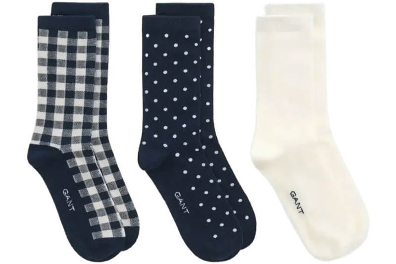 Dot And Gingham Check Socks 3-Pack, Evening Blue