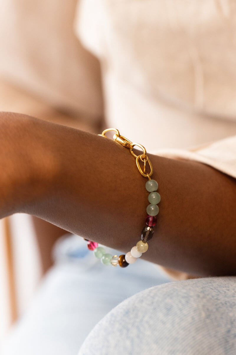 Armband tillverkat i 100% återvunnet silver med pläterat med 18K guld från SysterP.- Armbandet har naturliga stenar och pärlor i olika färger