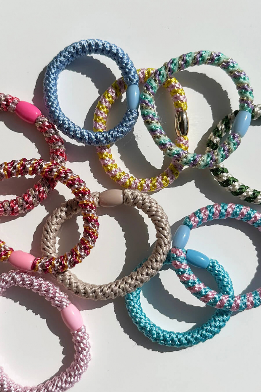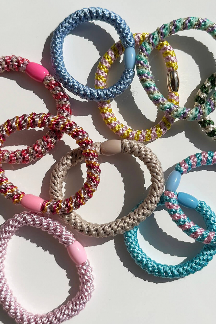 Flätad hårsnodd med pärla som är skonsam för håret och håller det på plats hela dagen samt är en fin accessoar som sticker ut från Elin et Acc.- 100% Polyester