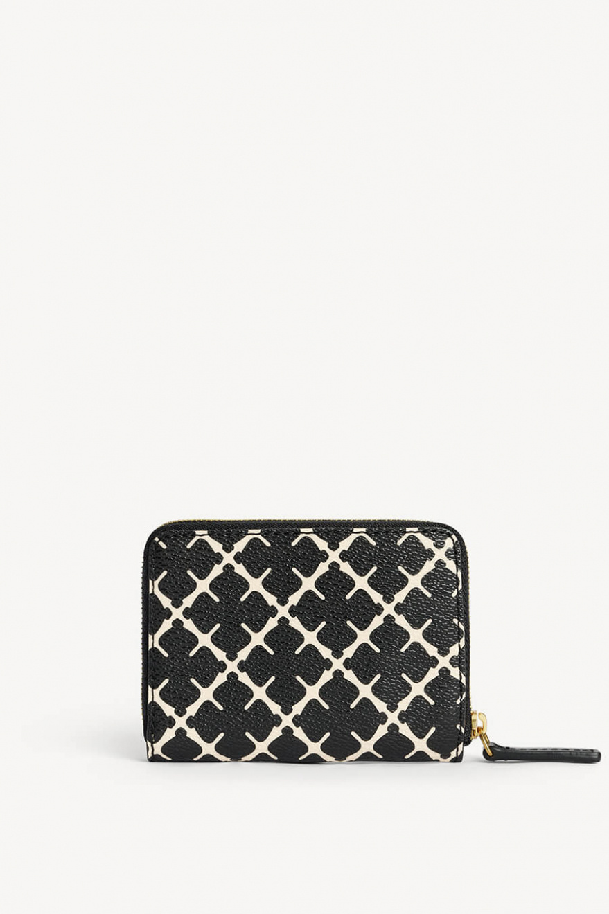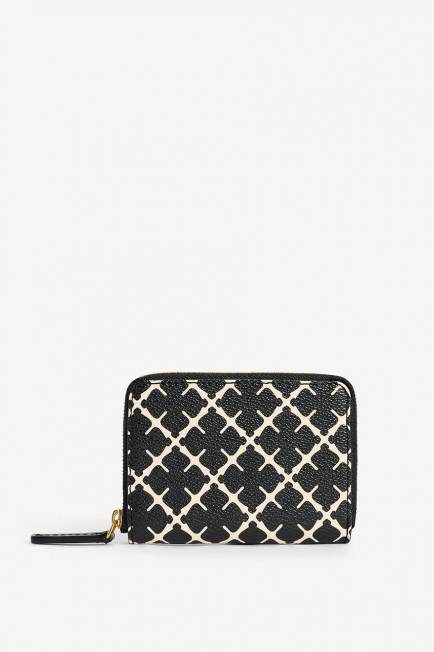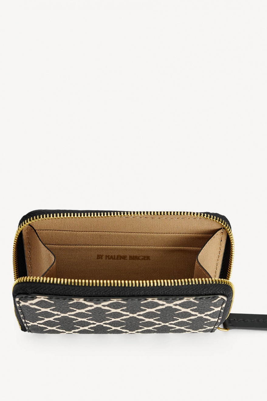 Liten plånbok med dragkedja, 4 kortfack, logga inuti på canvasfodret, detaljer i läder med målade kanter och är i signatur mönster från By Malane Birger.- 100% Polyvinyl Chloride