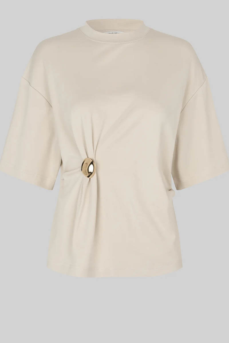 Enora Brooch Tee, Soft Beige