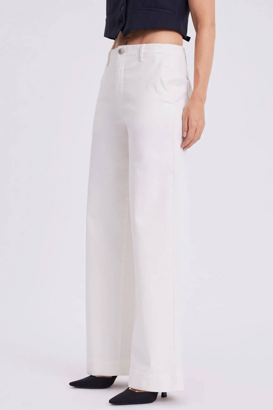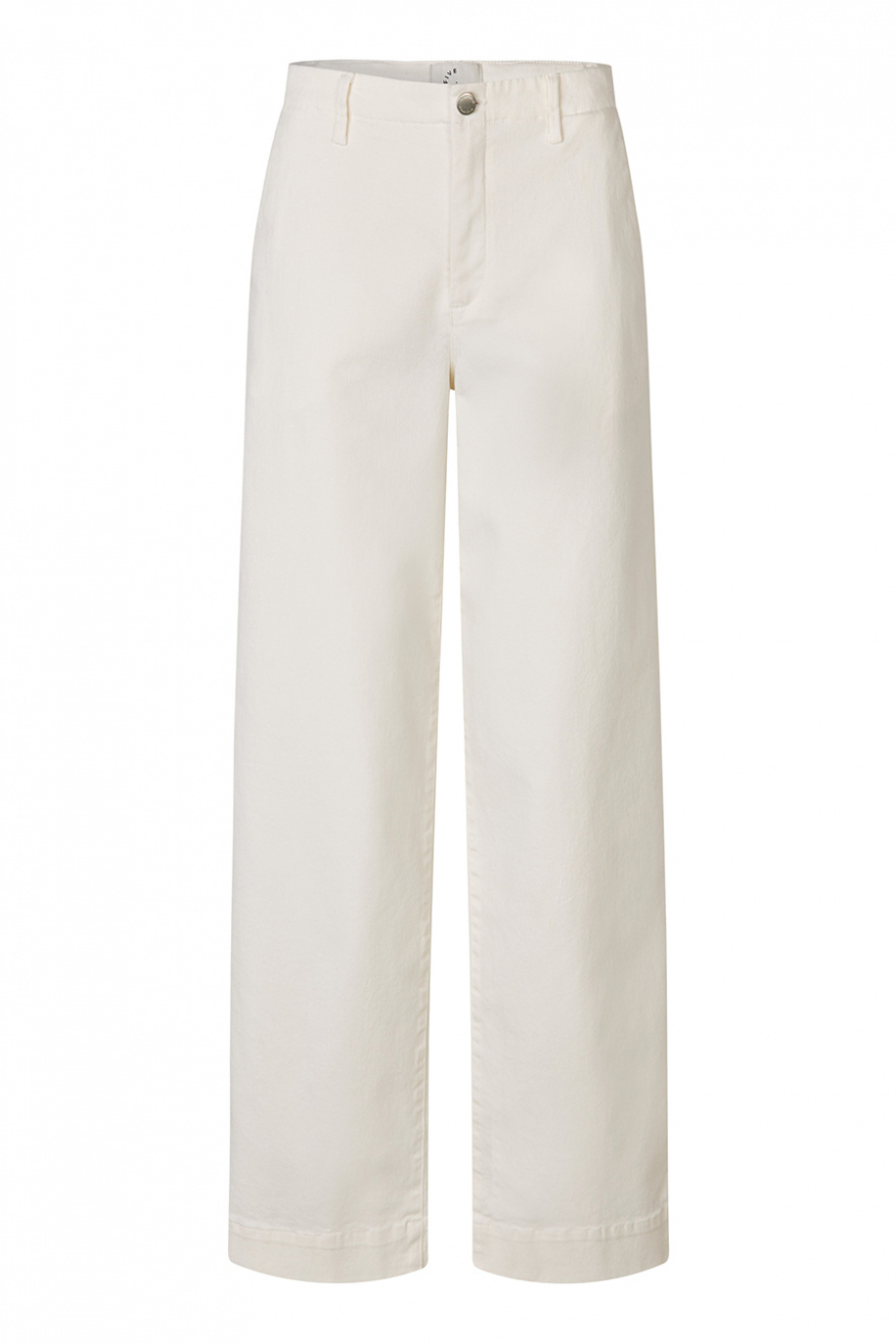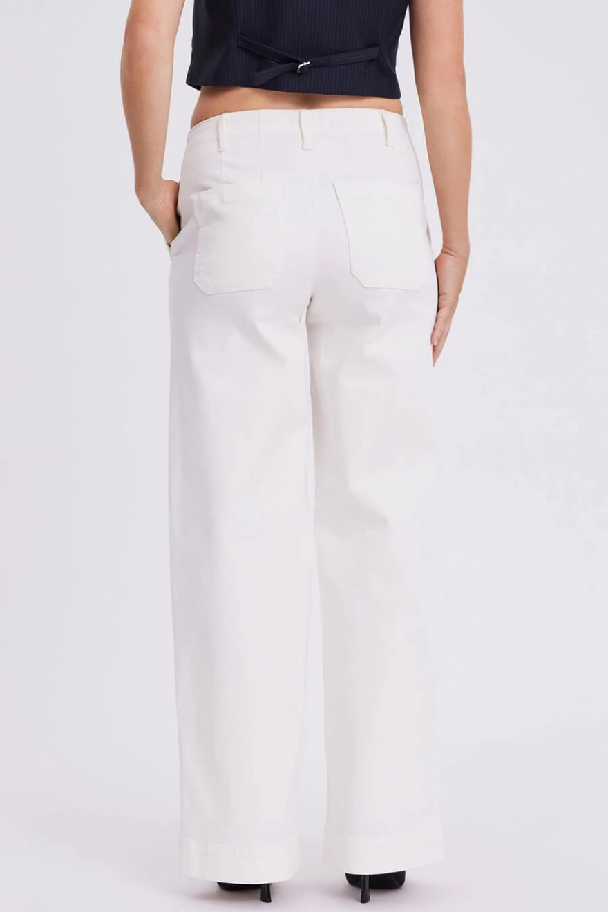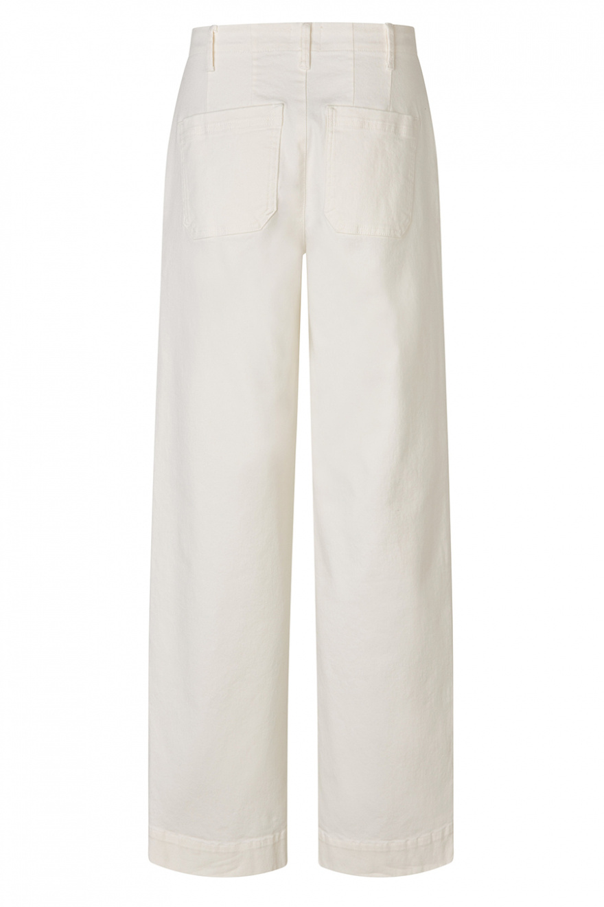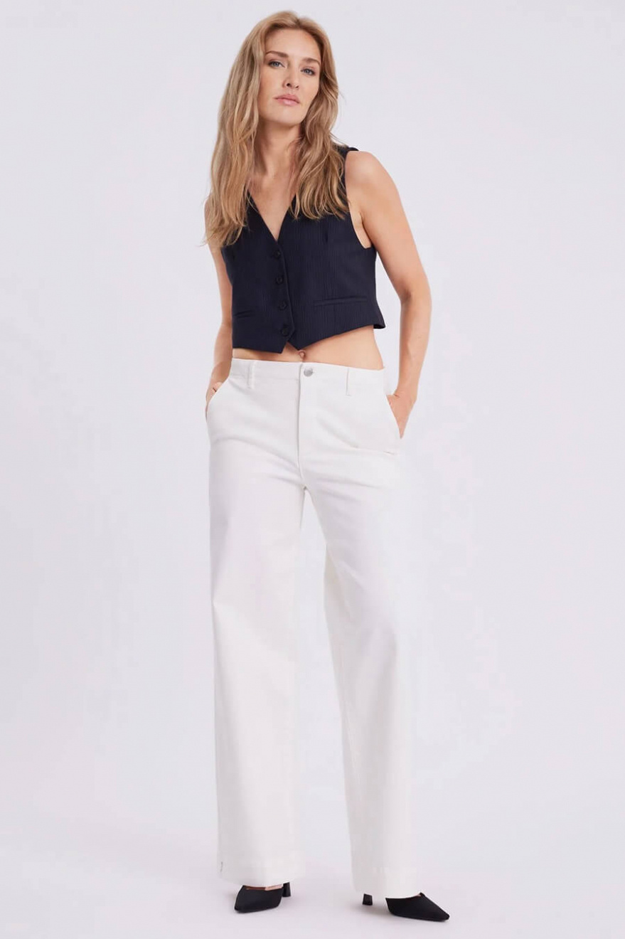 Vita jeans med vida ben och medelhög midja är definitionen av chic vardagsstil. De fyrkantiga bakfickorna ger en modern twist, medan den perfekta passformen framhäver din siluett. Ett stilrent val för sommarens enklaste, mest eleganta outfits.Jeans i en återvunnen bomullsblandning med medelhög midja, vida ben i full längd, fickor i sidan och fyrkantiga fickor bak från FiveUnits.