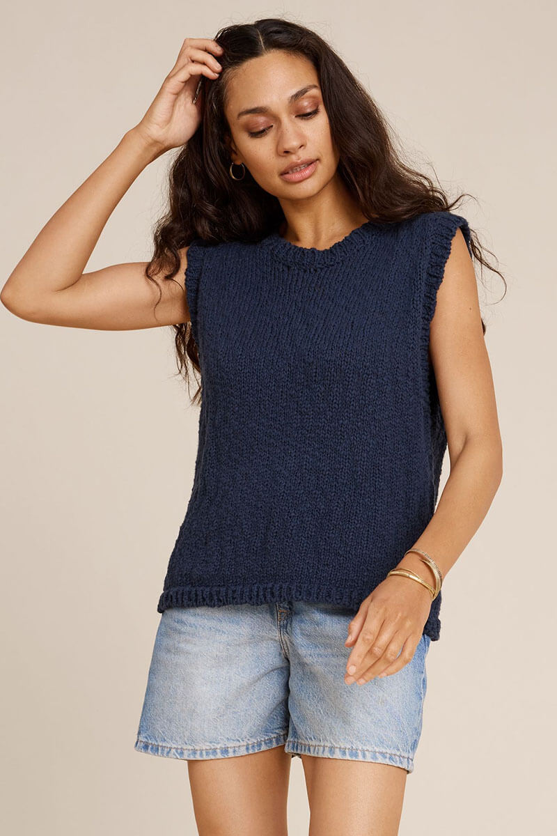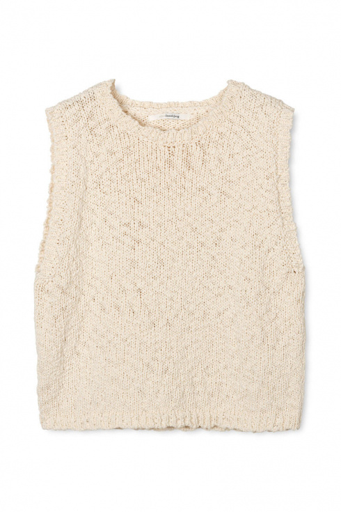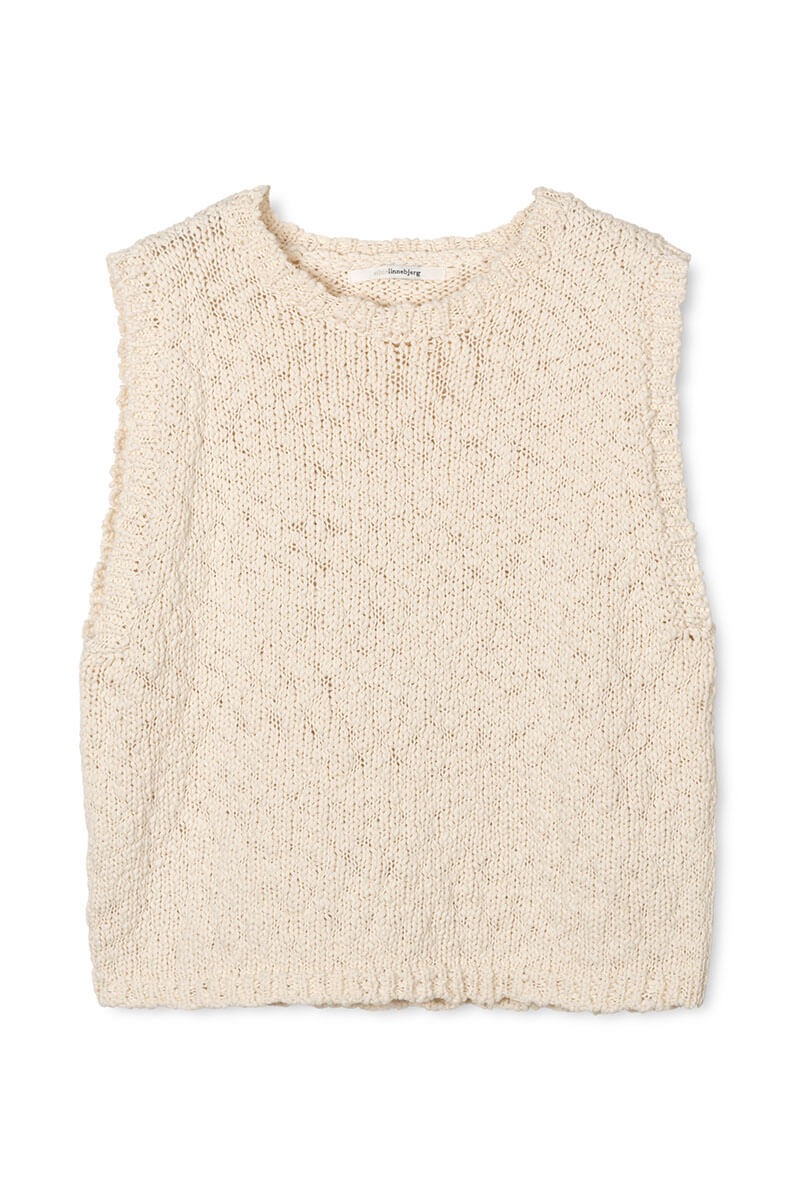 Toppen är stickad i en lyxig bomullskvalitet med vacker struktur som gör den till en riktig favorit. Den mjuka och luftiga känslan tillsammans med rund halsringning ger hög komfort och tidlös stil.Använd som topp eller som en väst över en blus.