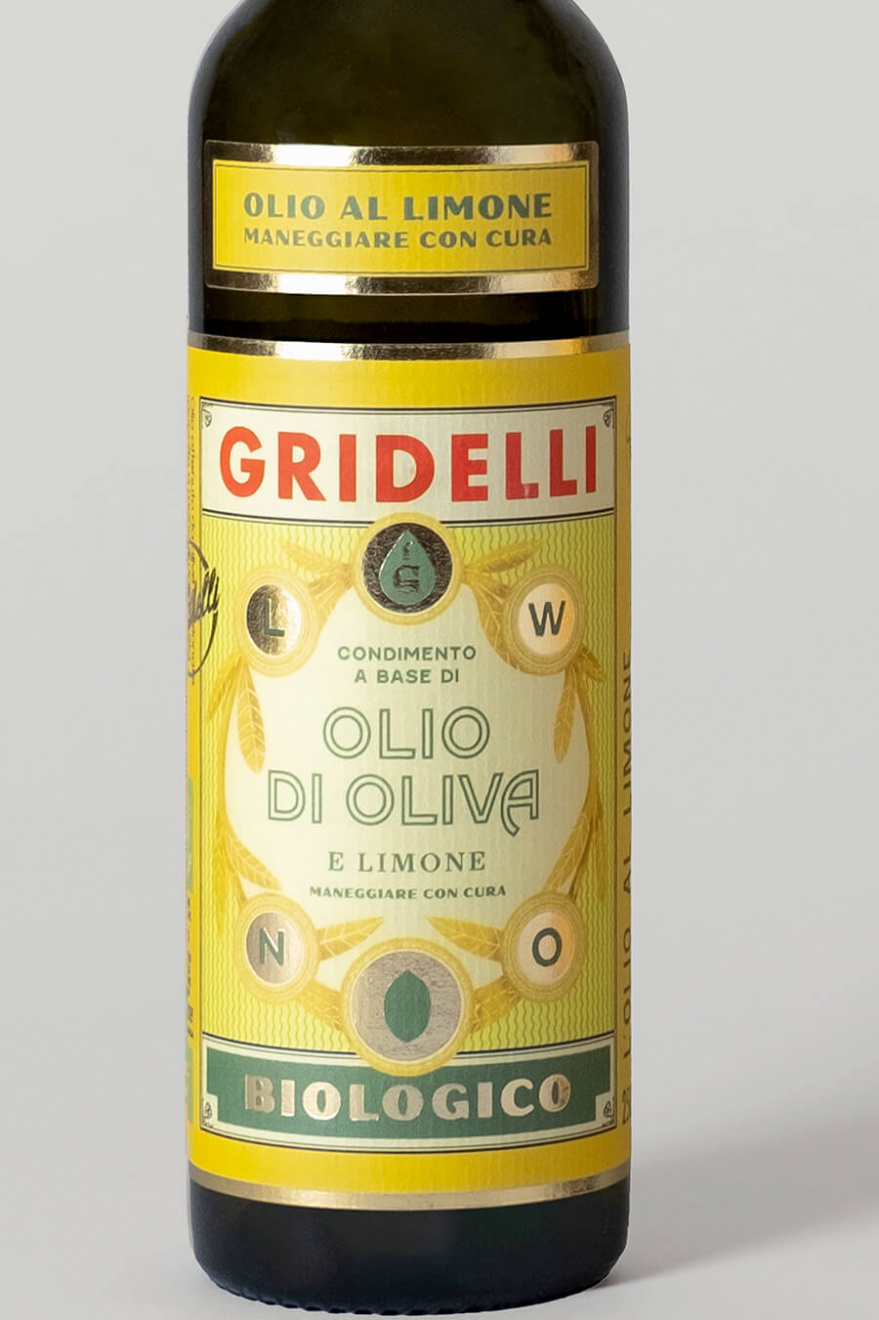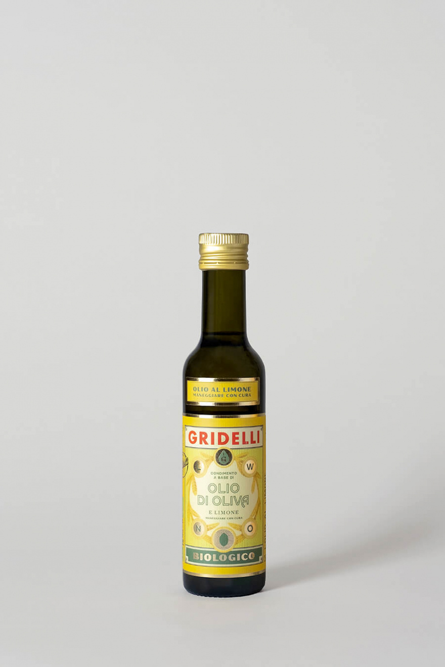 Fantastisk olivolja från Gridelli som är ekologisk, extra virgin och smaksatt med citroner från Sicilien. Inte nog med att alla Gridellis produkter har en vacker design som gör den till en fin inredningsdetalj i köket så är dom även av högsta kvalitet.Denna olivolja är gjord i Leccino från Marche där de pressar oliverna tillsammans med de ekologiska skalade citroner från Sicilien. Olivoljan är perfekt att ha på matbordet för att avnjutas precis som den är, men du kan även ringla den över sallader, en bit kött och fisk.