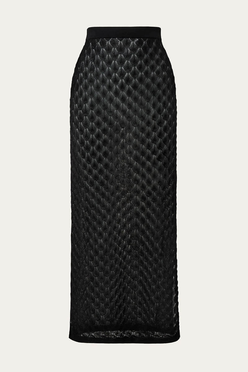 Fannie Pointelle Knitted Maxi Skirt, Black