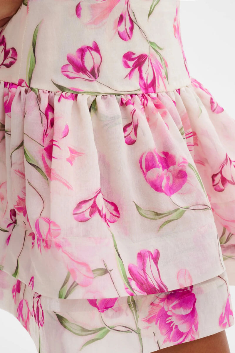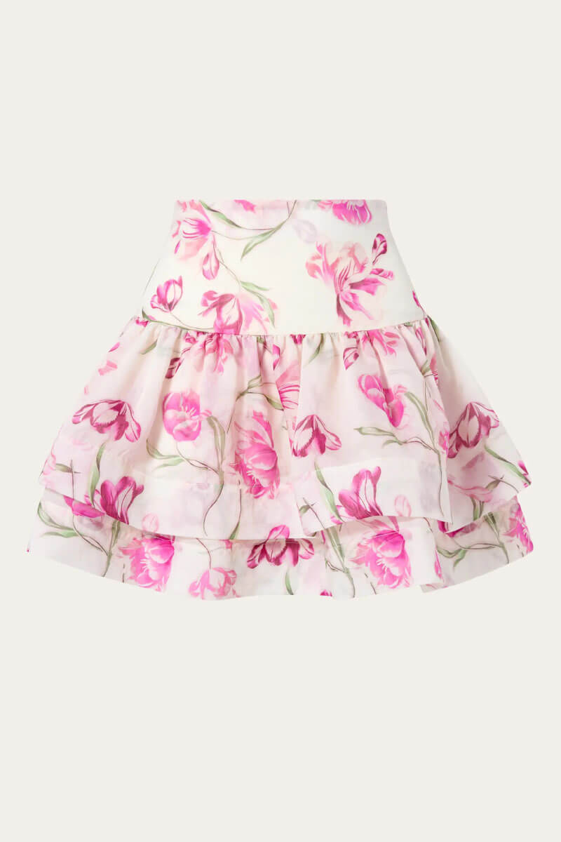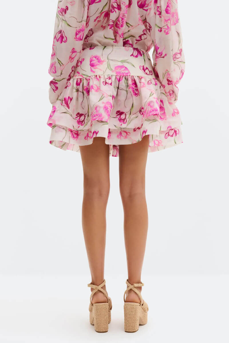 Fantine Ruffled Mini Skirt, Tulip Pink