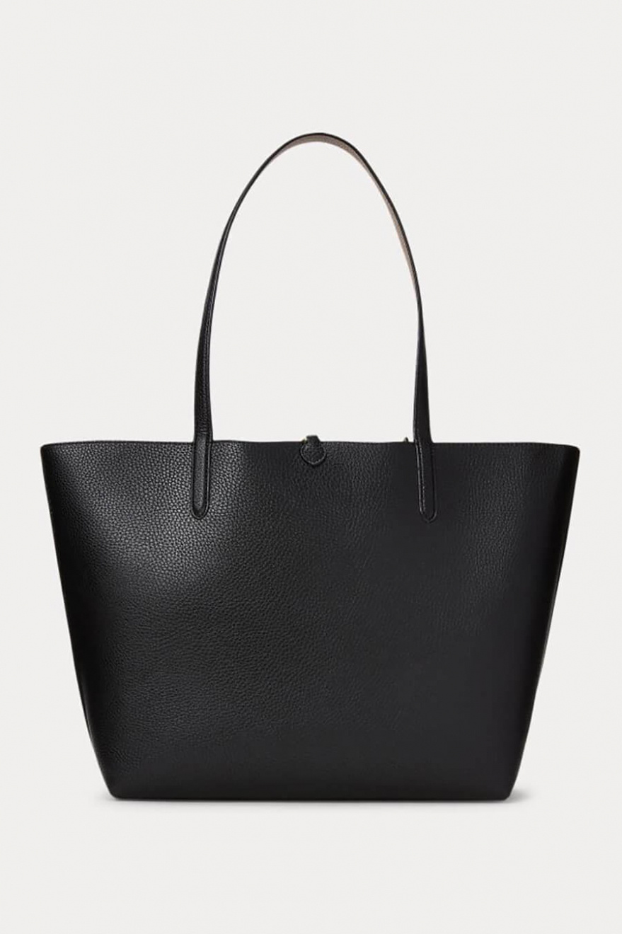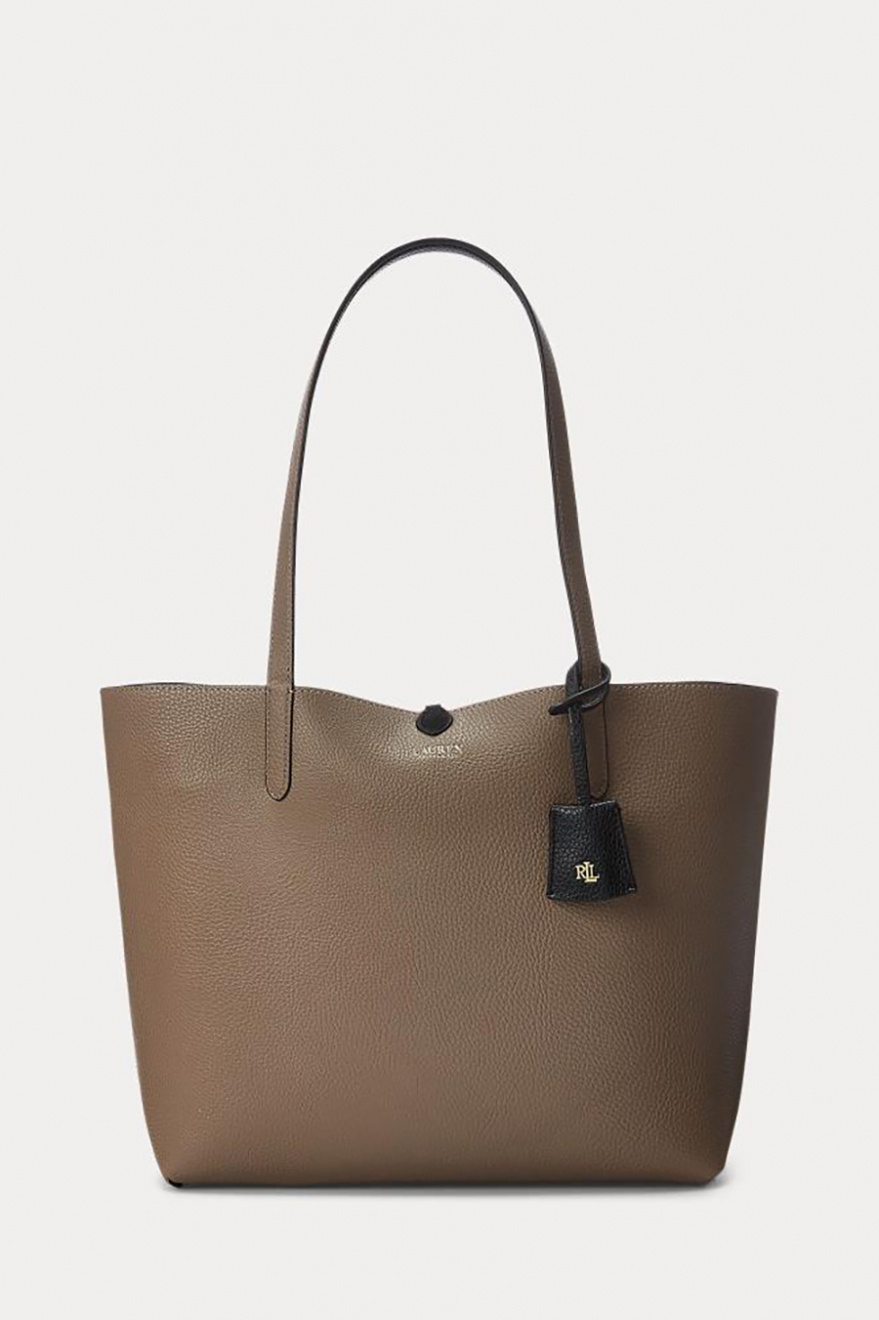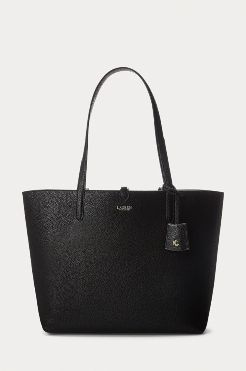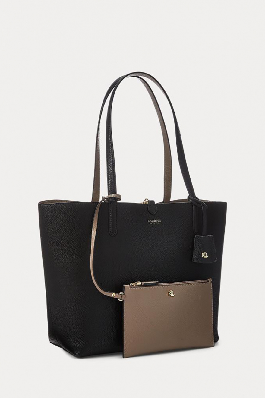 En vändbar tote i lyxigt fuskläder som ger dig två väskor i en – elegant beige på ena sidan, klassiskt svart på den andra. Stilren design med genomtänkta detaljer gör den lika praktisk som sofistikerad. Din nya favorit, oavsett dag eller dresscode.Tote väska i en vändbar design med dubbla handtag, en matchande innerficka som är avtagbar, nyckelknippa och stängs med ett spänne från Lauren Ralph Lauren.
