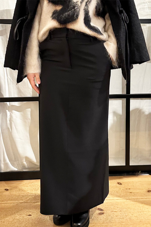 Den svarta maxikjolen med en elegant slits bak är ett tidlöst plagg som kombinerar sofistikerad stil med komfort. Perfekt för både vardag och fest – en garderobsfavorit med en modern twist!Maxikjol i en återvunnen blandning med hög midja, smal rak passform, slits bak och stängs med dragkedja och knapp fram från Second Female.