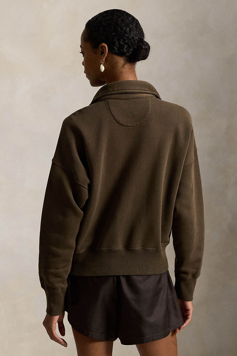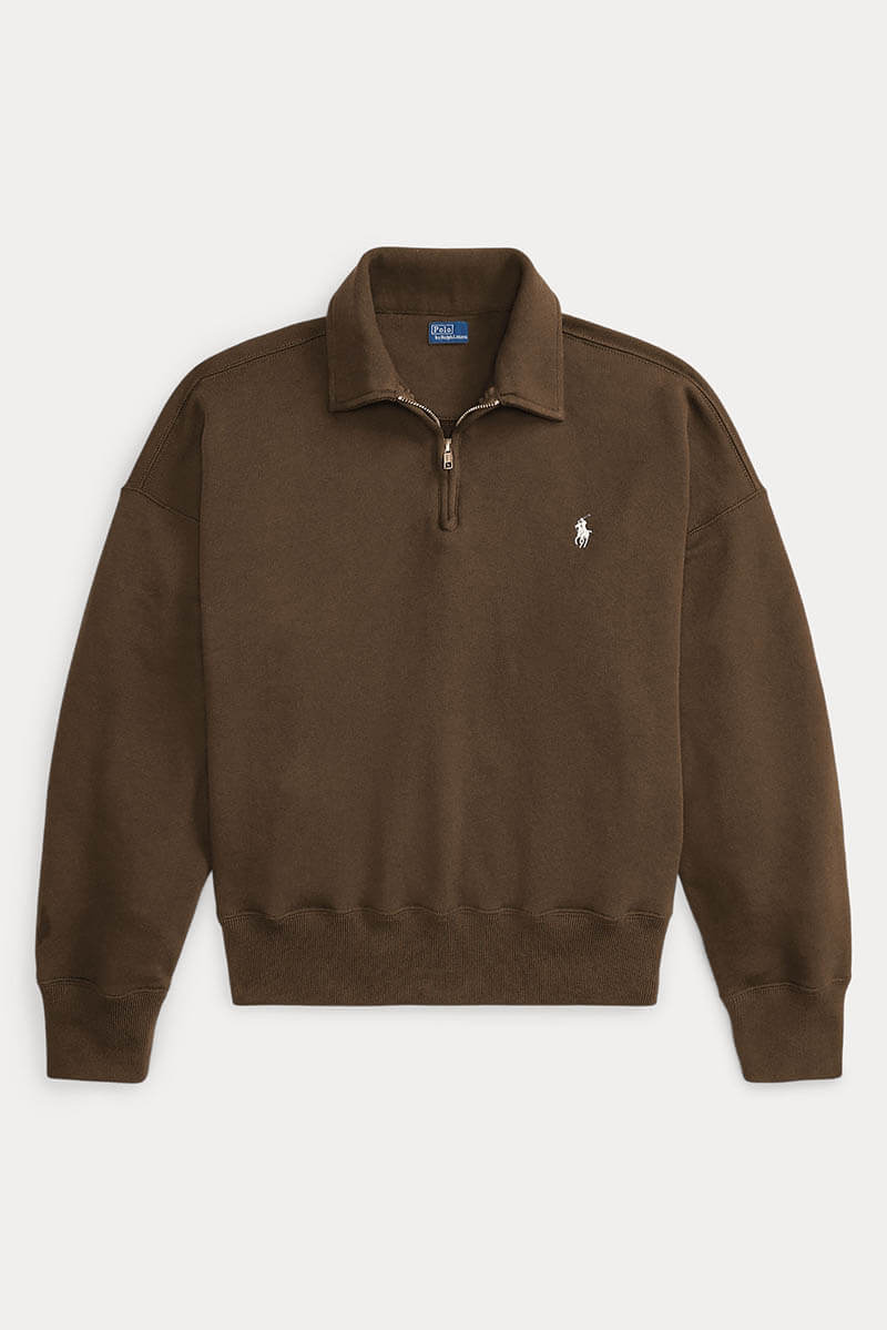 Tillverkad i en loopback-fleece av en mellantjock bomullsblandning.Denna kvartzip-tröja har ett mjukt frottéliknande innertyg och är broderad med ikoniska Pony på bröstet.