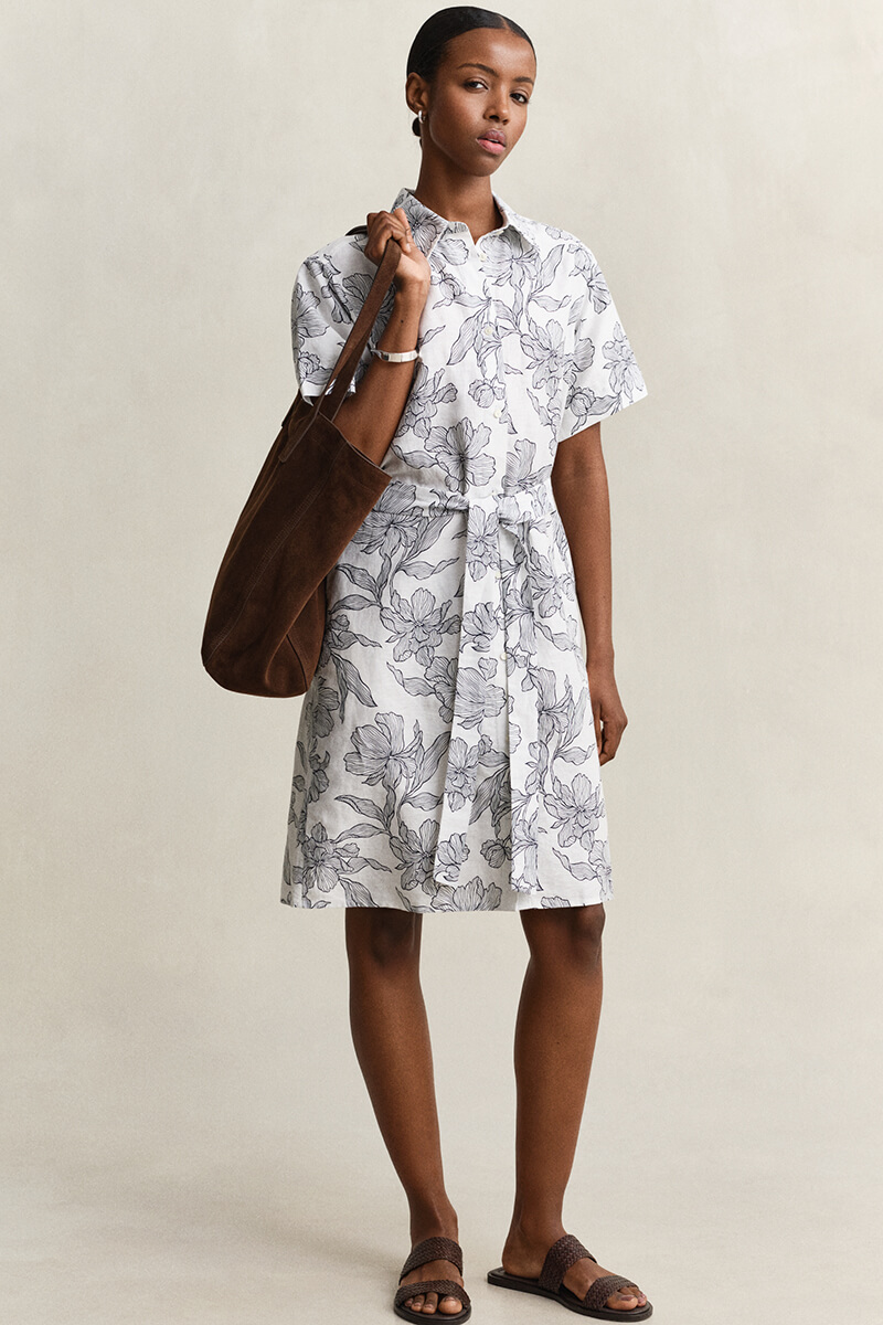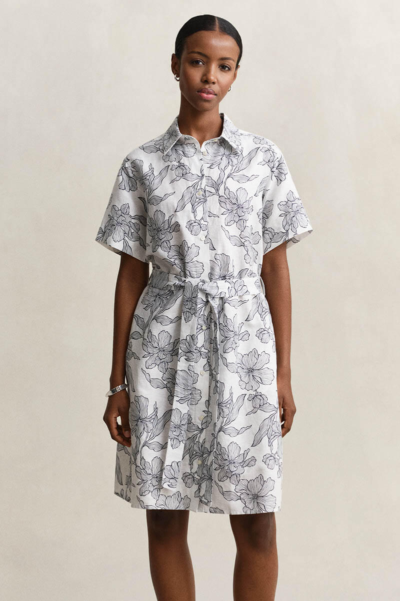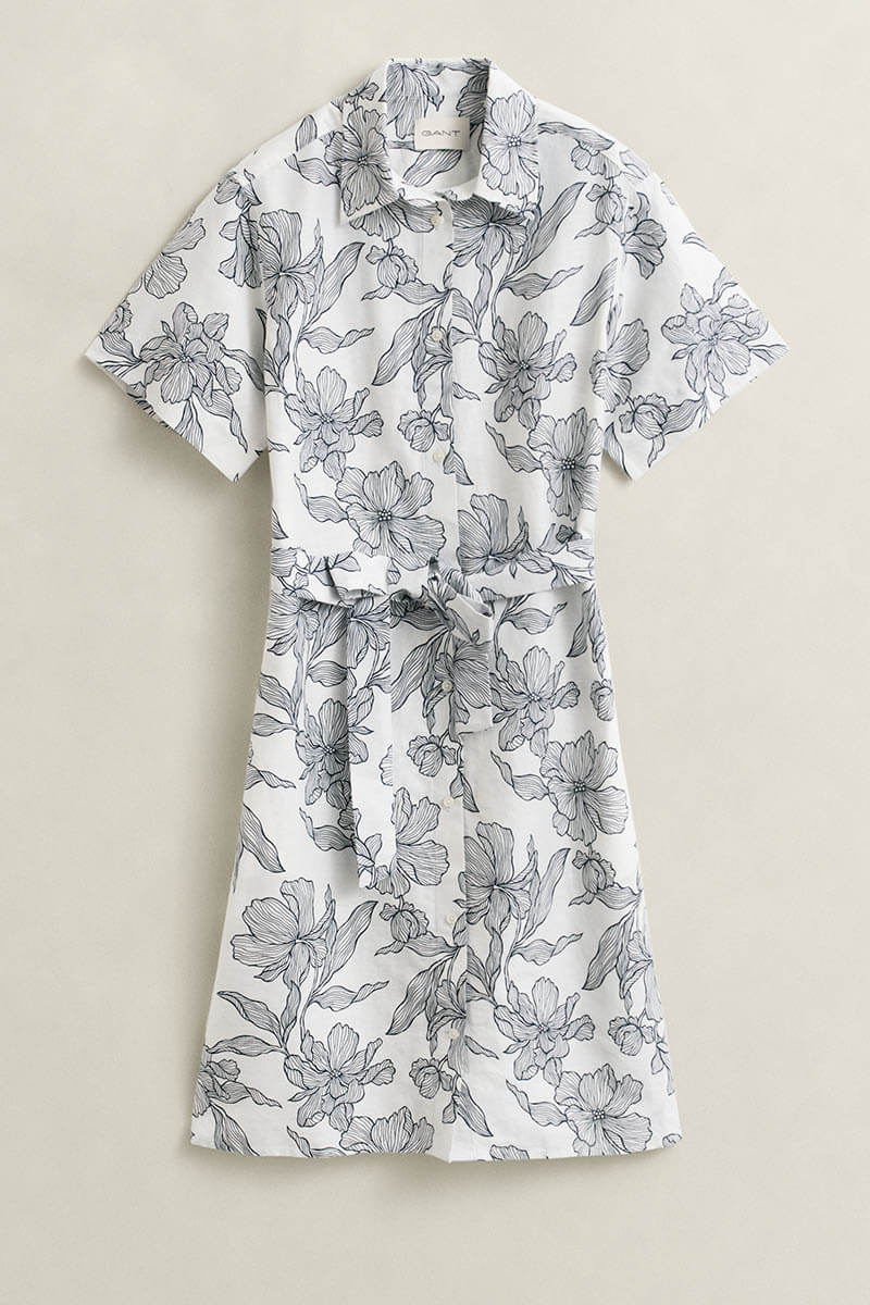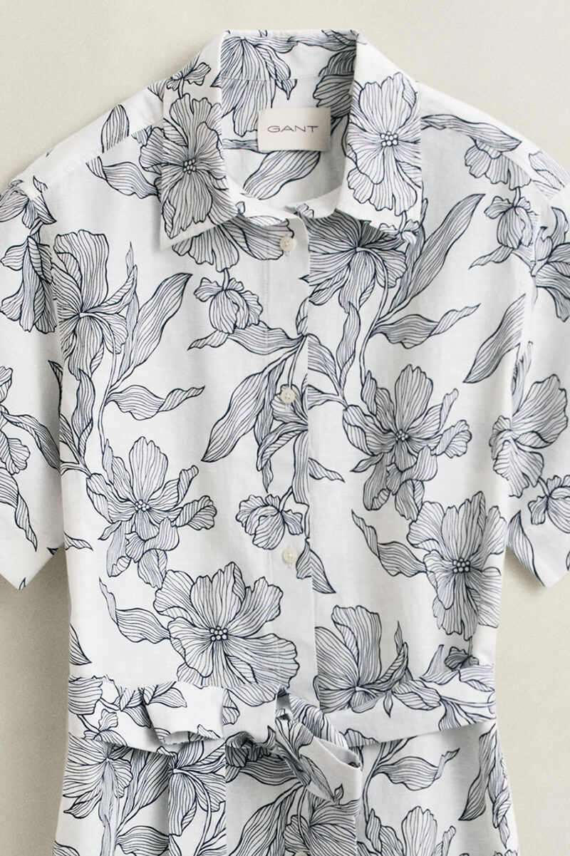 Det säsongsbetonade blomstermönstret är framtaget av Gants eget designteam och ger klänningen ett elegant men avslappnat uttryck, perfekt för både vardag och semester.