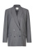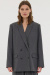 Den mörkgrå nyansen sätter tonen, medan den skräddade passformen balanserar upp precision och avslappning. Matcha med kostymbyxa för helhet – eller denim för kontrast.Randig dubbelknäppt kavaj i en återvunnen blandning med lös passform, lätt vadderade axlar, en innerficka och två fickor fram från FiveUnits.