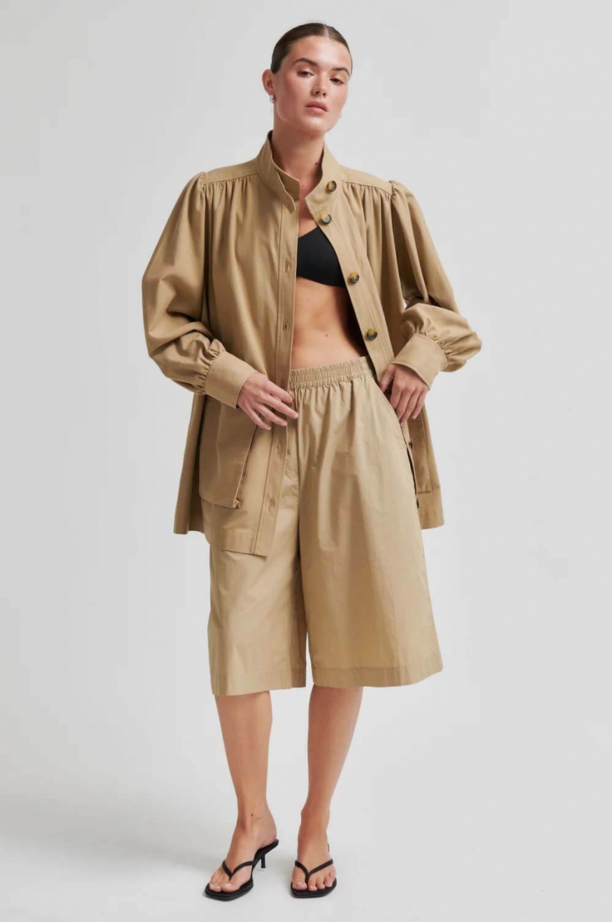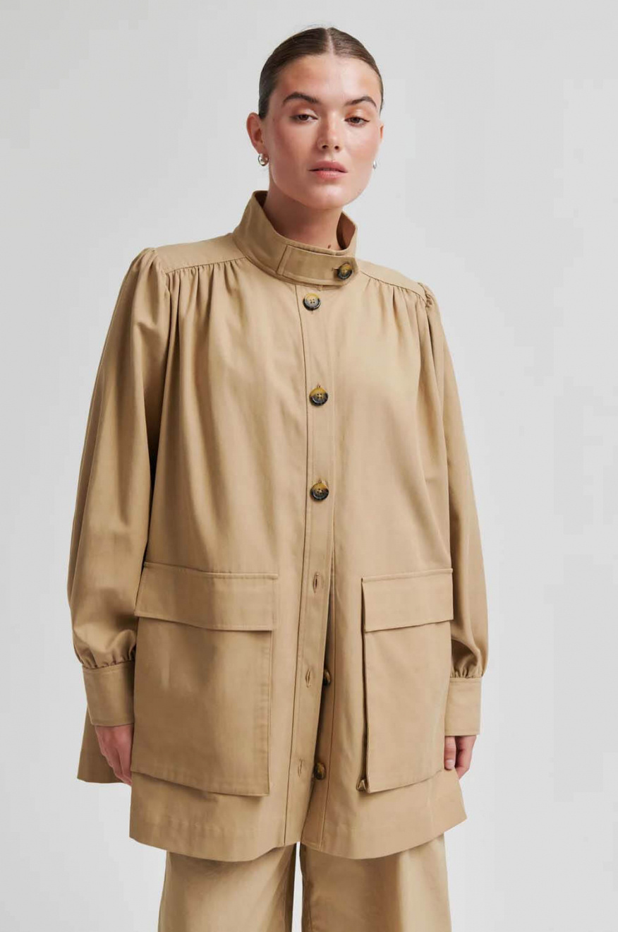 Second Female jacka med fickor, tillverkad i en mjuk bomullsblandning för en stilren och modern känsla.
