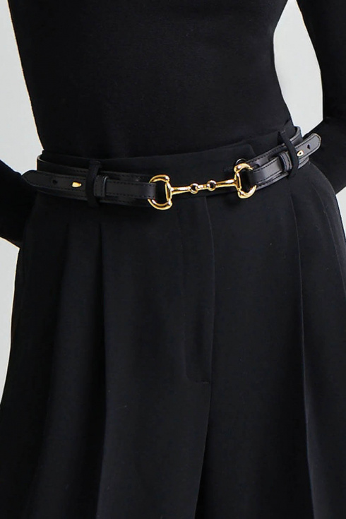 Lyxigt skärp från Andiata, en klassiker du kommer älska att styla med dina plagg.Läderbälte med hästbett spänne i guldfärgad nickelfri metall. Handgjord i Italien.