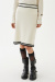 En vacker ullkjol med ett elegant strukturmönster som ger både stil och värme. Perfekt för kalla dagar, kombinerar den tidlös design med modern komfort för en sofistikerad look.Strukturmönstrad kjol i en ullblandning med elastisk resår, kontrastfärgade kanter, något A-formad modell och liten logga fram från Busnel.