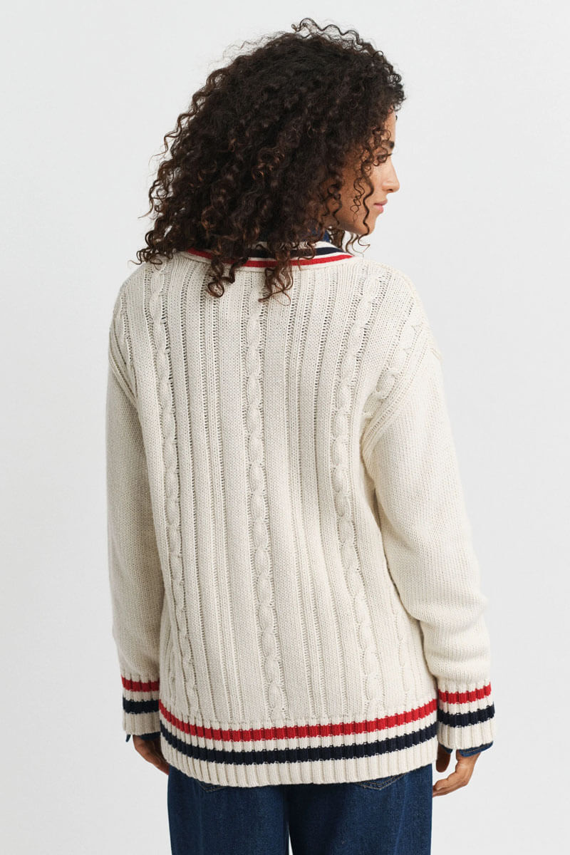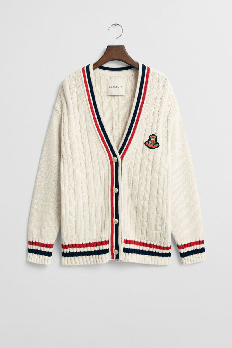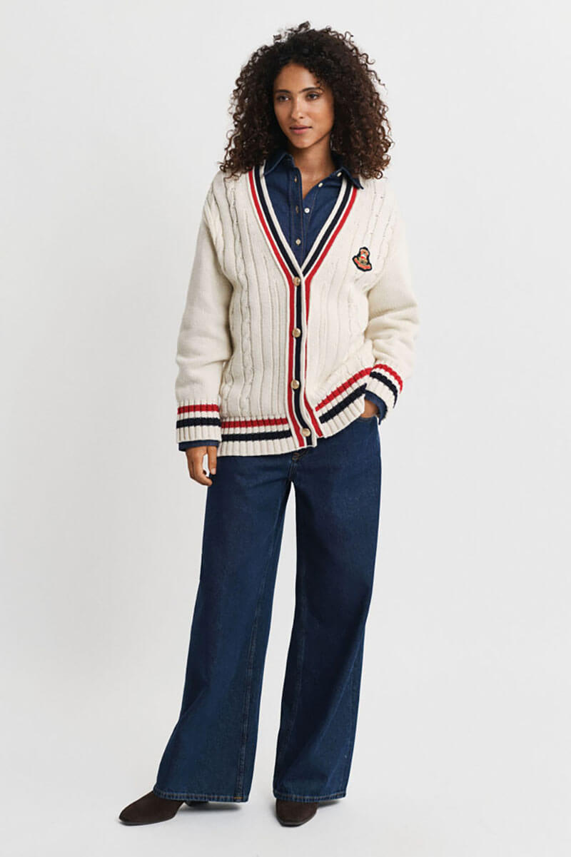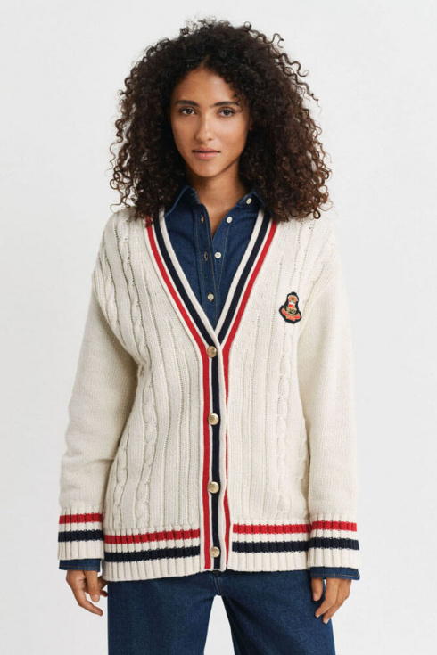 Gant varsity cable v-neck cardigan, Cream
