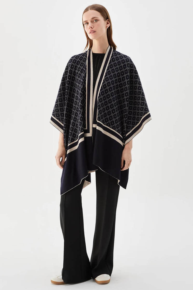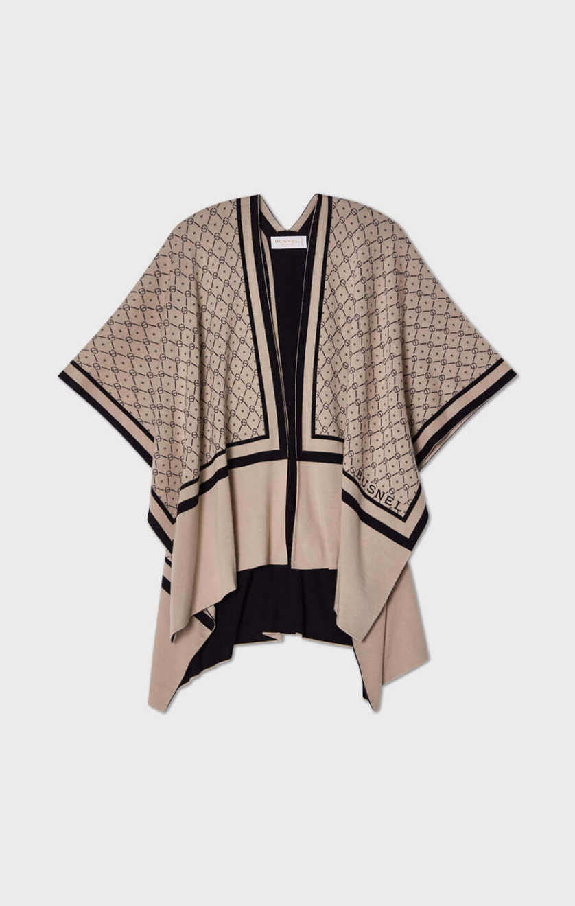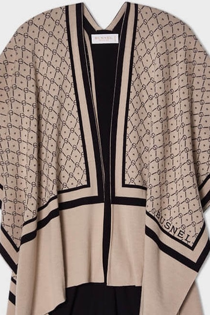Den har Busnels rep-logotyp i jacquard med kontrasterande färger, vilket skapar ett grafiskt men samtidigt subtilt mönster som är lätt att styla till olika looks. Bär den draperad över axlarna, markerad i midjan med ett bälte, eller låt den tala för sig själv. Ponchon är vändbar.