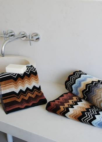 Mönstrad handduk från Missoni. Missoni gör mjuka fina handdukar i olika mönster och färger, mixa och matcha dina favoriter i badrummet!100% Bomull