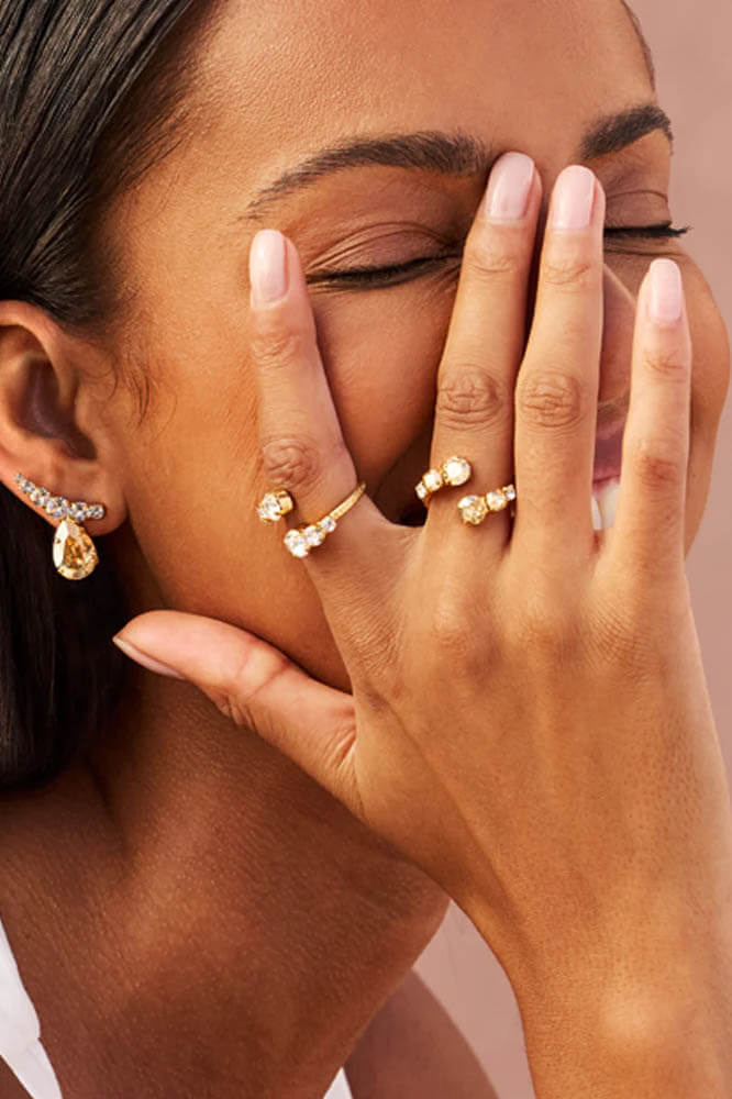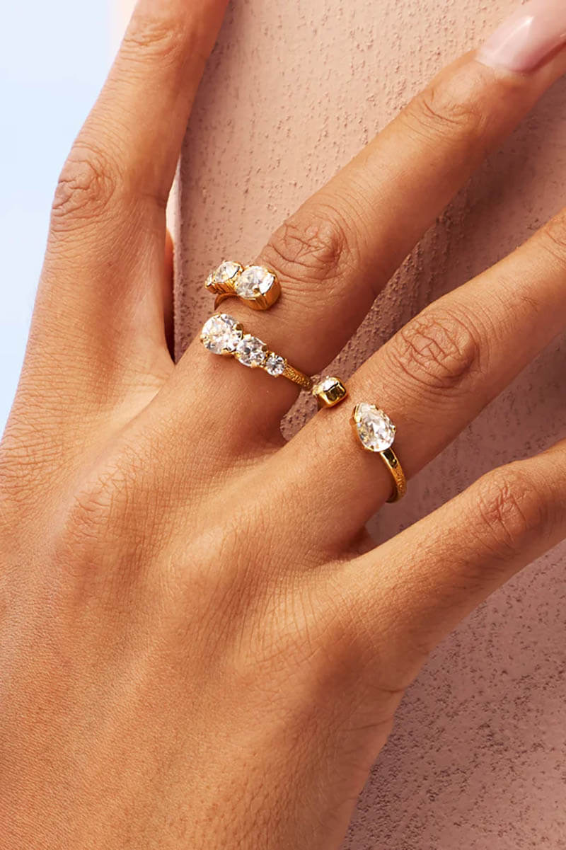 Ring gjord i mässing med 18K guldplätering och gnistrande kristaller från Caroline Svedbom.