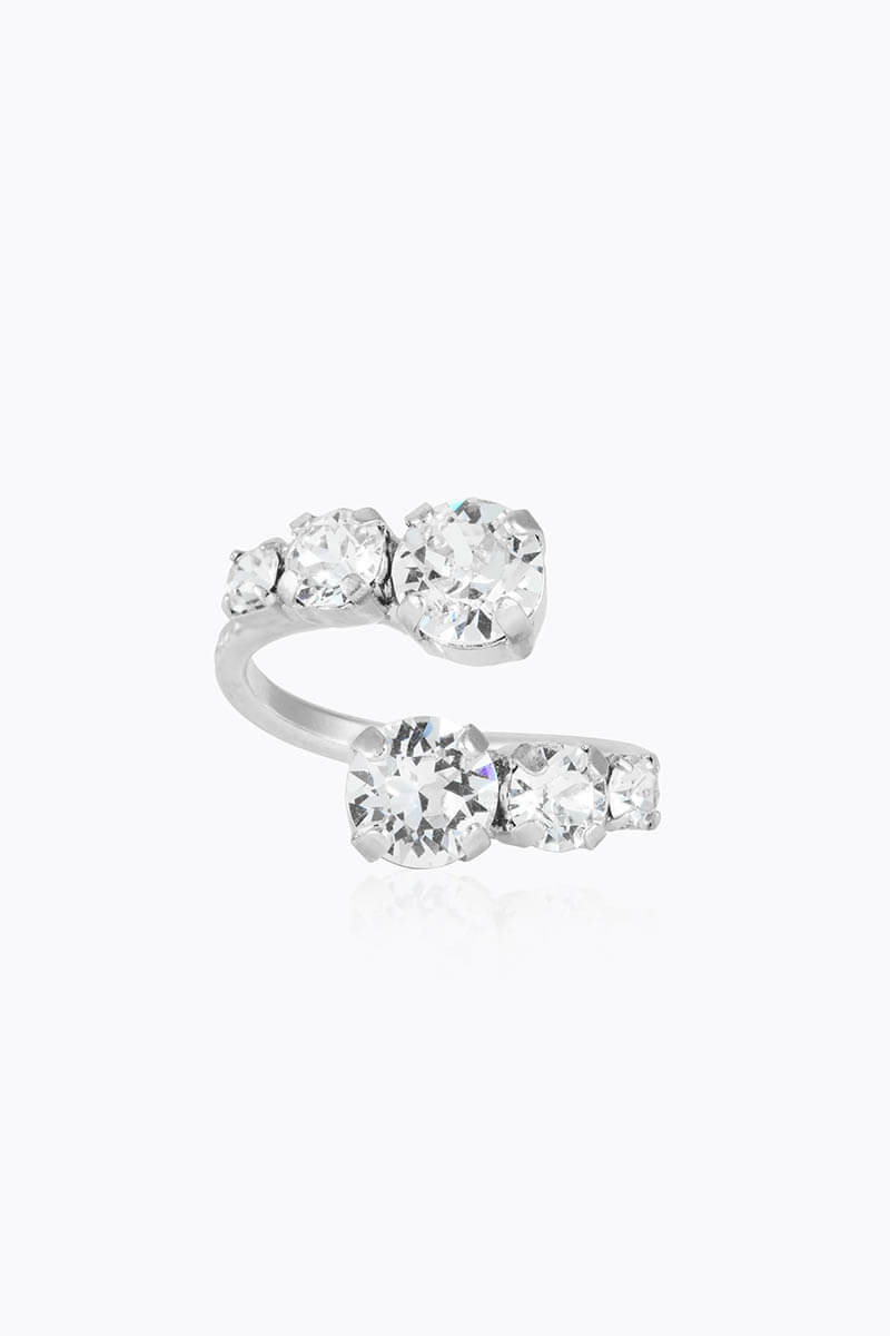 Ring gjord i mässing med rodiumplätering och gnistrande kristaller från Caroline Svedbom.