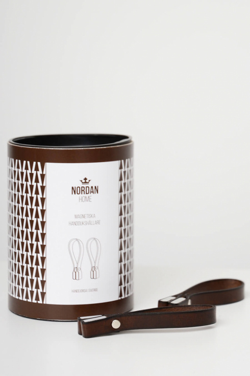 Handdukshållare i vegetabiliskt garvat läder med starka magneter från Nordan Home.100% Vegetabiliskt garvat läder