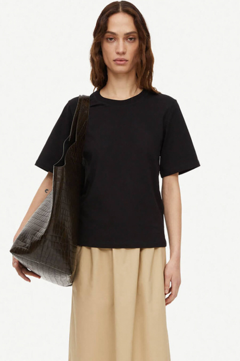 Den enkelt formade Hedil-t-shirten från By Malene Birger är ett mångsidigt tillskott till varje övergångsgarderob. Den minimalistiska designen är formad till en löst sittande siluett med en rund halsringning som är idealisk för lager.Använd dina skräddarsydda byxor och kjolar för en avslappnat look.