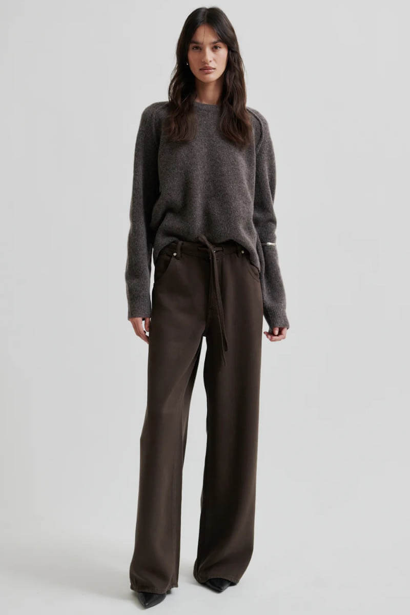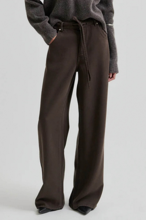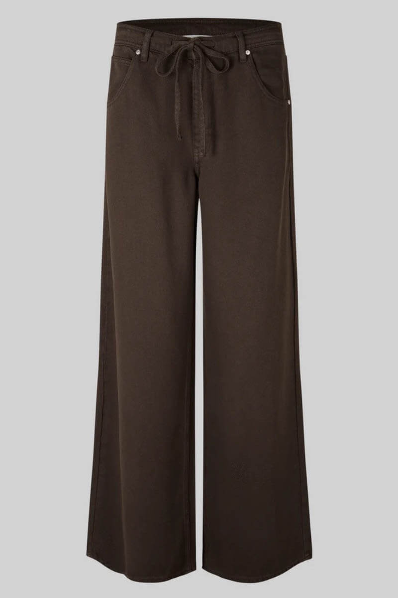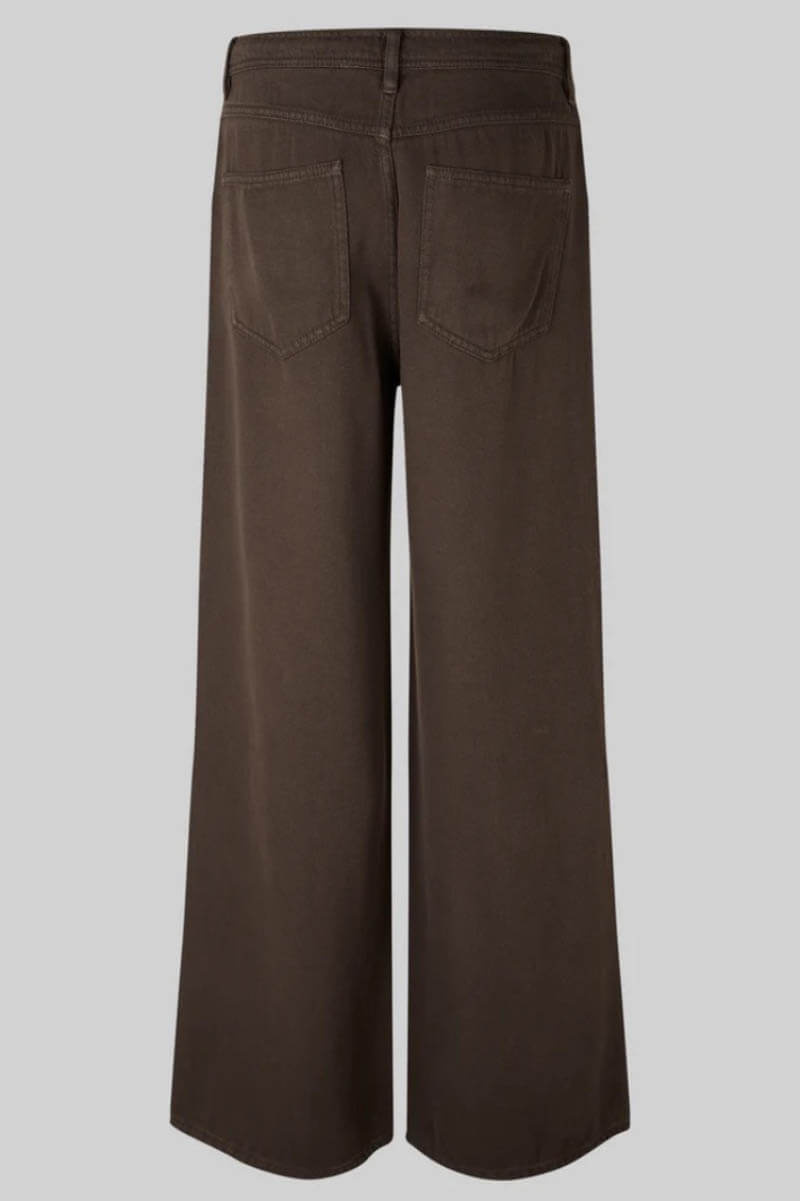 Byxa i mjuk och draperande lyocell med dold dragkedja och knapp framtill, knytband i midjan, femficksmodell och silverfärgade, brandade metalldetaljer från Second Female. Midjehög passform med lösa, raka ben som ger ett modernt och ledigt uttryck.