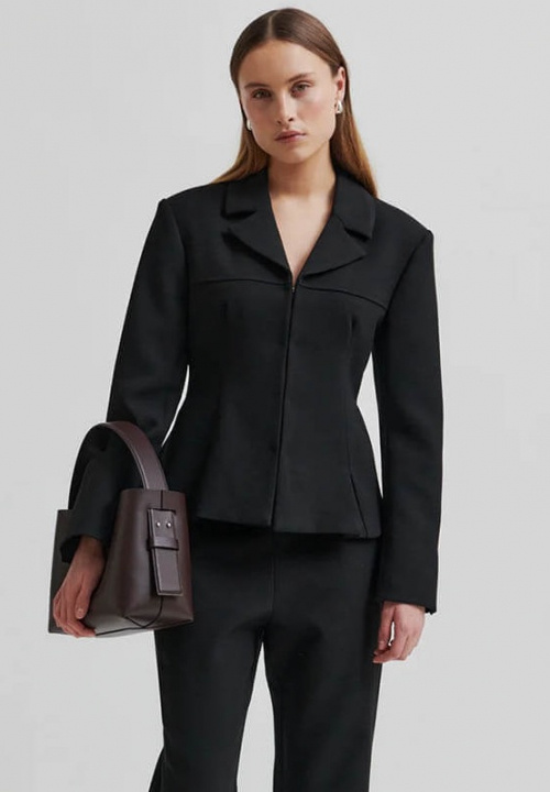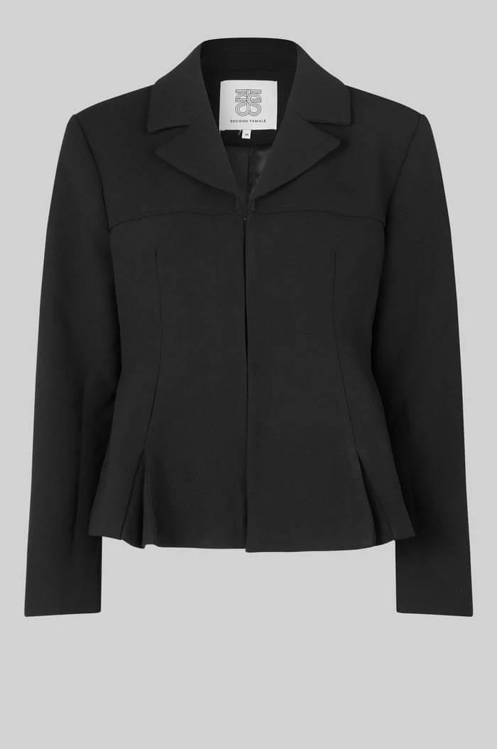 En liten jacka-kavaj för alla tillfällen.Bär den med snygg byxa eller jeansen för en mer cool look. Skräddarsydd kavaj från Second Female. Kavajen är tillverkad i ett tätt, slätt tyg som tål det mesta. Har ett slag och dold hyska framtill.