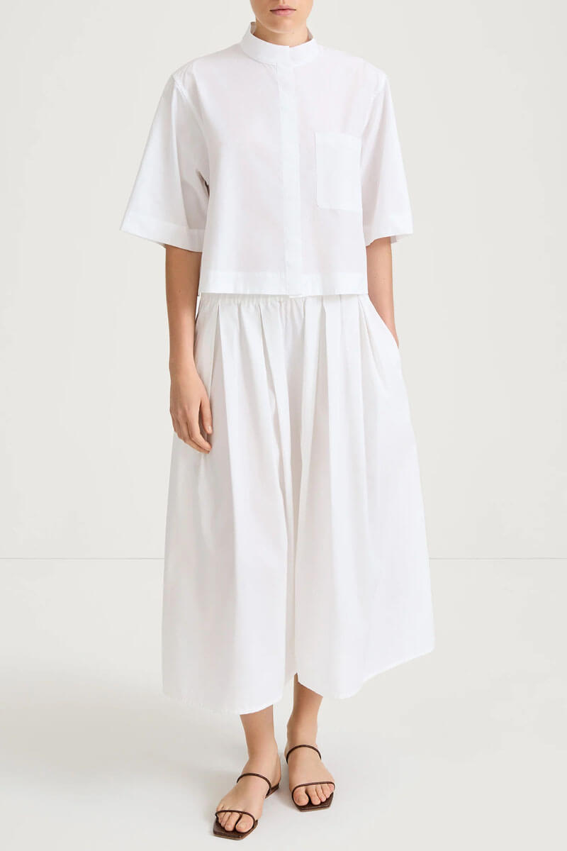 Den korta längden gör skjortan perfekt att matcha med högmidjade byxor eller kjolar – ett mångsidigt plagg som fungerar lika bra till vardag som till en mer uppklädd stil.
