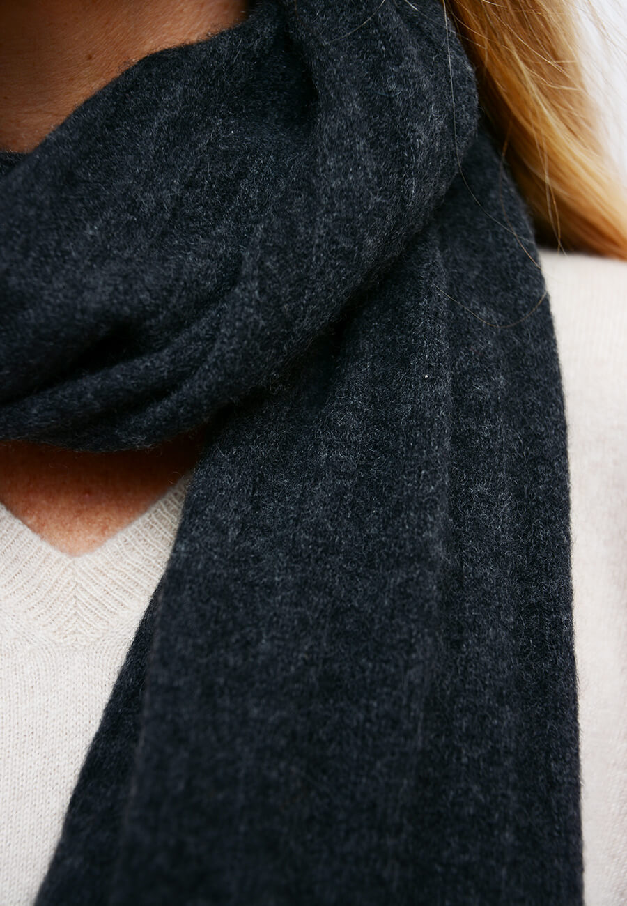 Stor sjal i lyxig cashmere. Storlek 170*45cm i fint ribbstickat.Du har den i halsen eller runt axlarna kyliga dagar.
