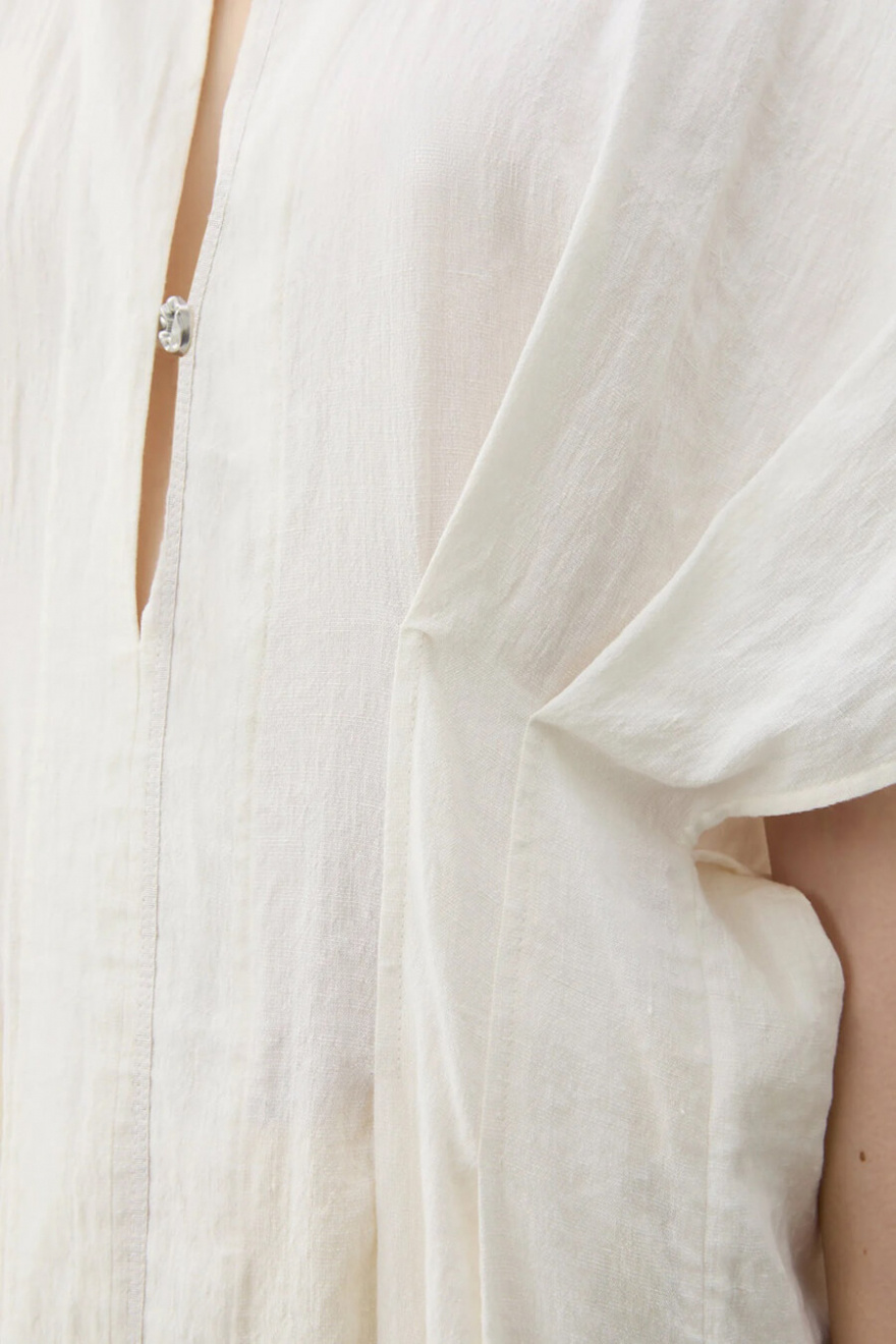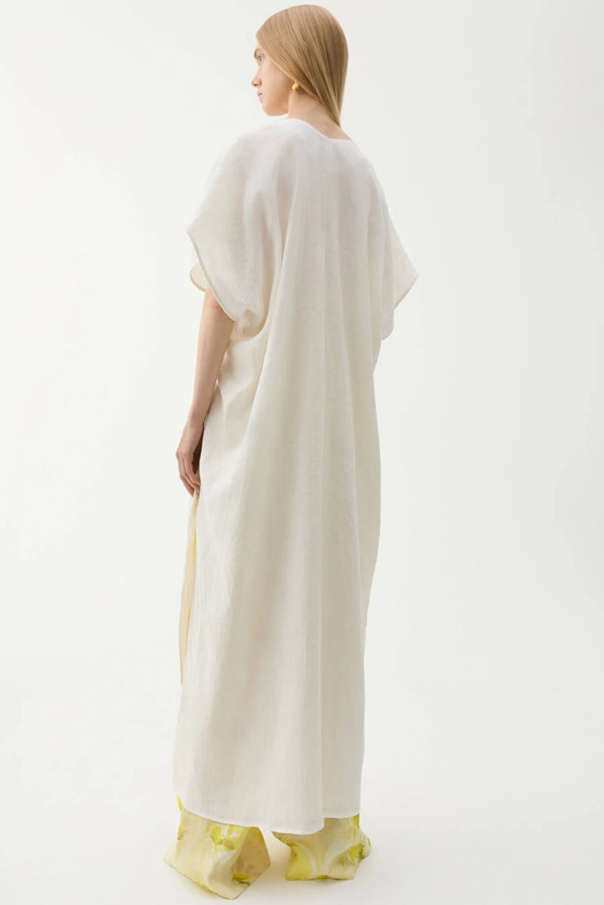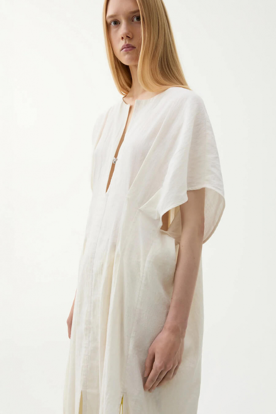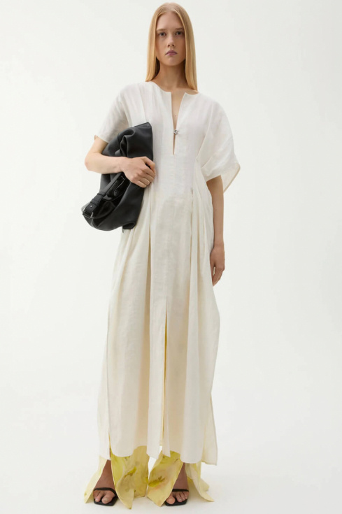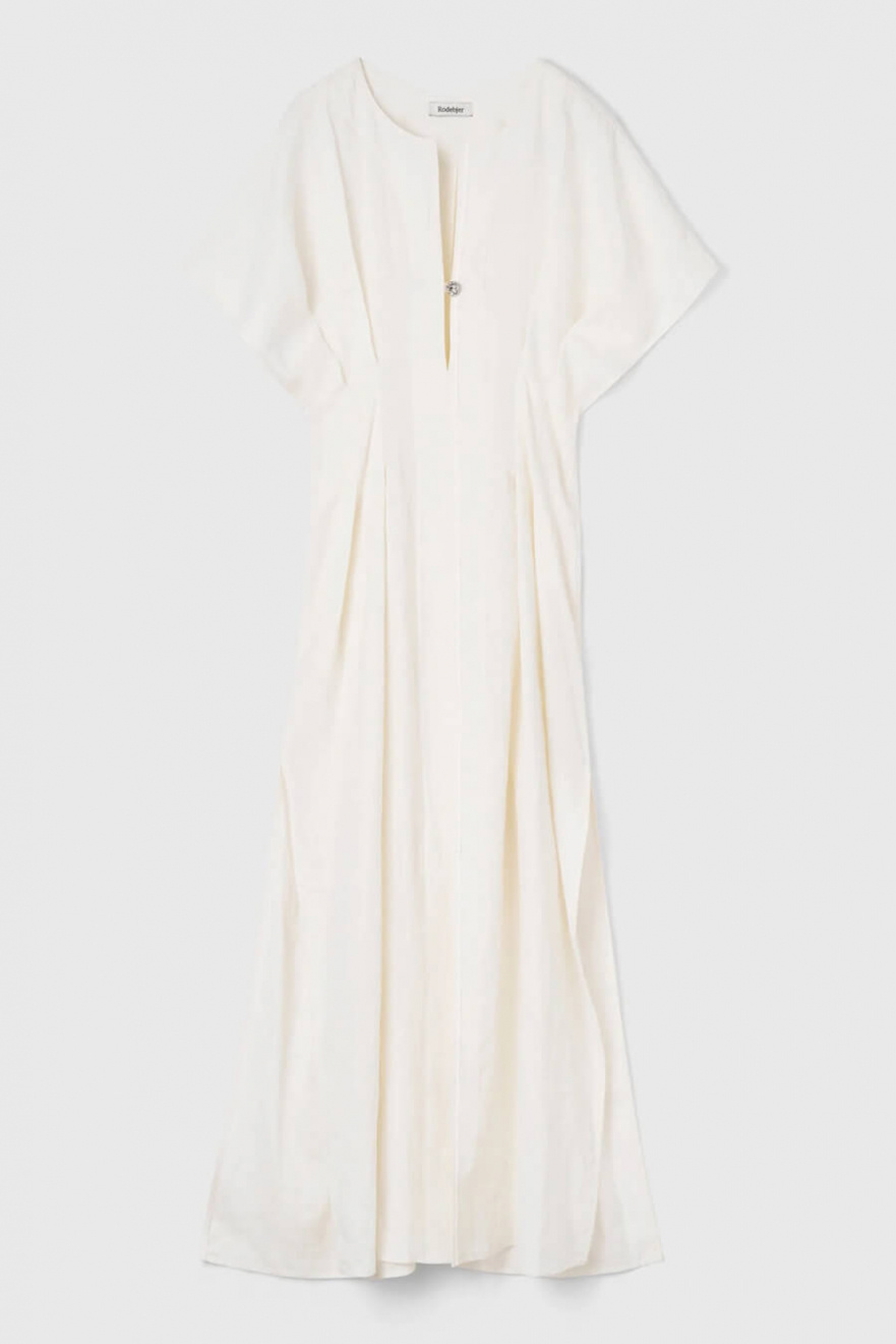 Luftig och elegant – denna klänning i linneblandning är sommarens självklara val. Med sin avslappnade silhuett och subtila detaljer blir den lika rätt på semestern som i stan. Kombinera med sandaler för en look som känns både lätt och lyxig.Maxiklänning i en linneblandning med veckade detaljer i midjan, avslappnad passform, stängs med en knapp fram, slitsar fram och i sidan från Rodebjer.