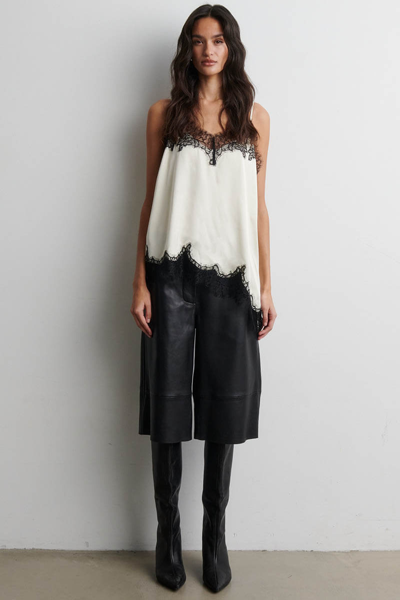 Lacia Contrast Strap Top, Cream & Black