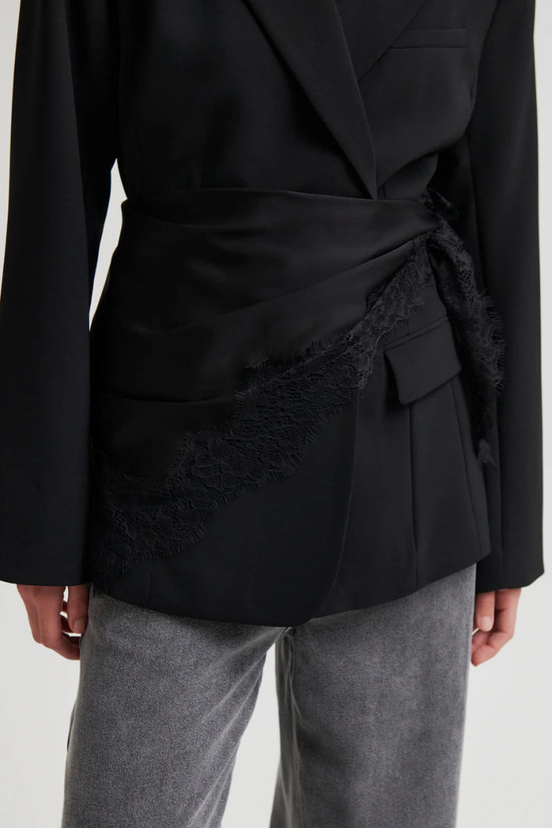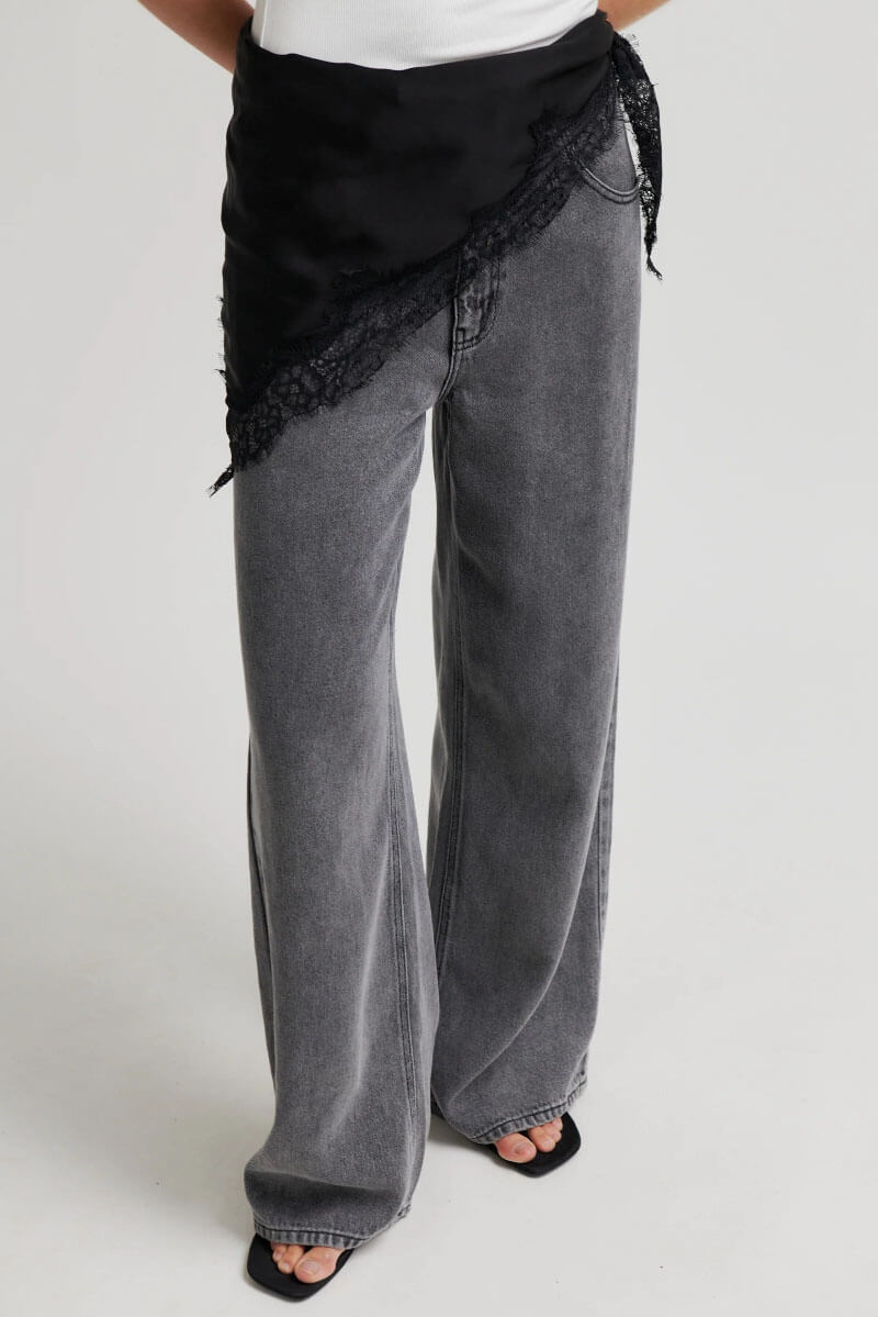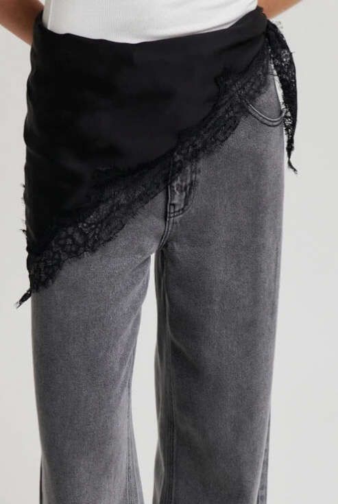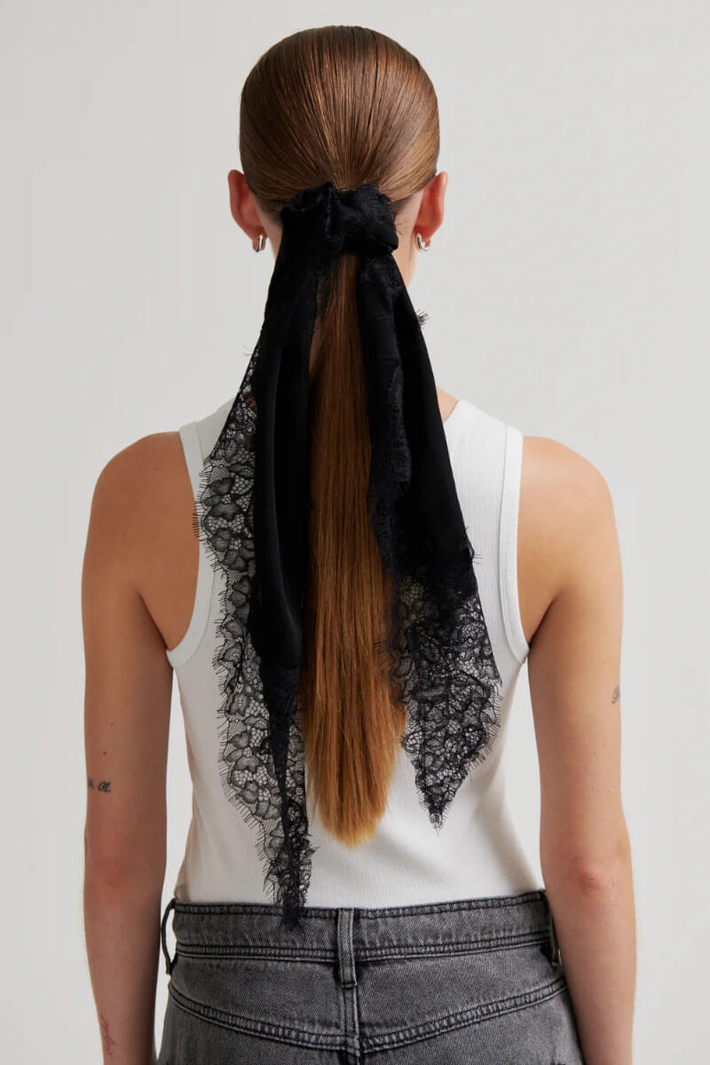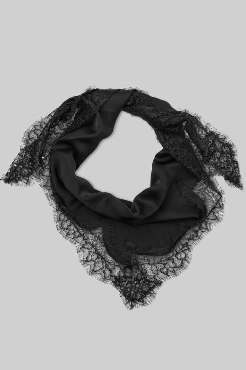 En romantisk scarf med spetskant som adderar en feminin touch till varje outfit. Scarfen är tillverkad i en mjuk viskosblandning som faller vackert och ger en elegant känsla. Perfekt att bära runt halsen, över axlarna eller knuten i midjan för att ge outfiten det lilla extra.
