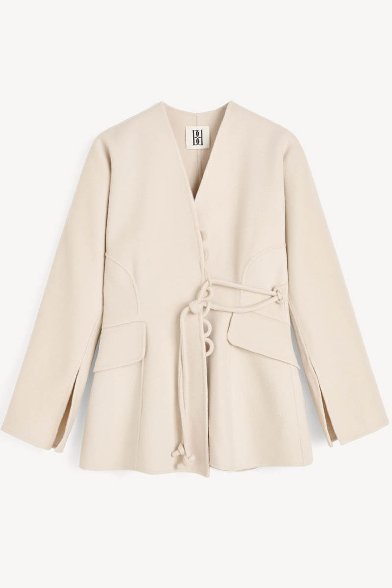 En feminin och varmare version av den klassiska kavajen. Blazern är tillverkad i elegant, filtat ull och har en omlottkonstruktion med justerbart knytband som ger kreativa sätt att bära den på. De djupa slitsarna på ärmarna ger en subtil och modern detalj. Stylea med jeans för en modern vardagslook eller kjol för en klassisk men stilsäker kvällsoutfit.