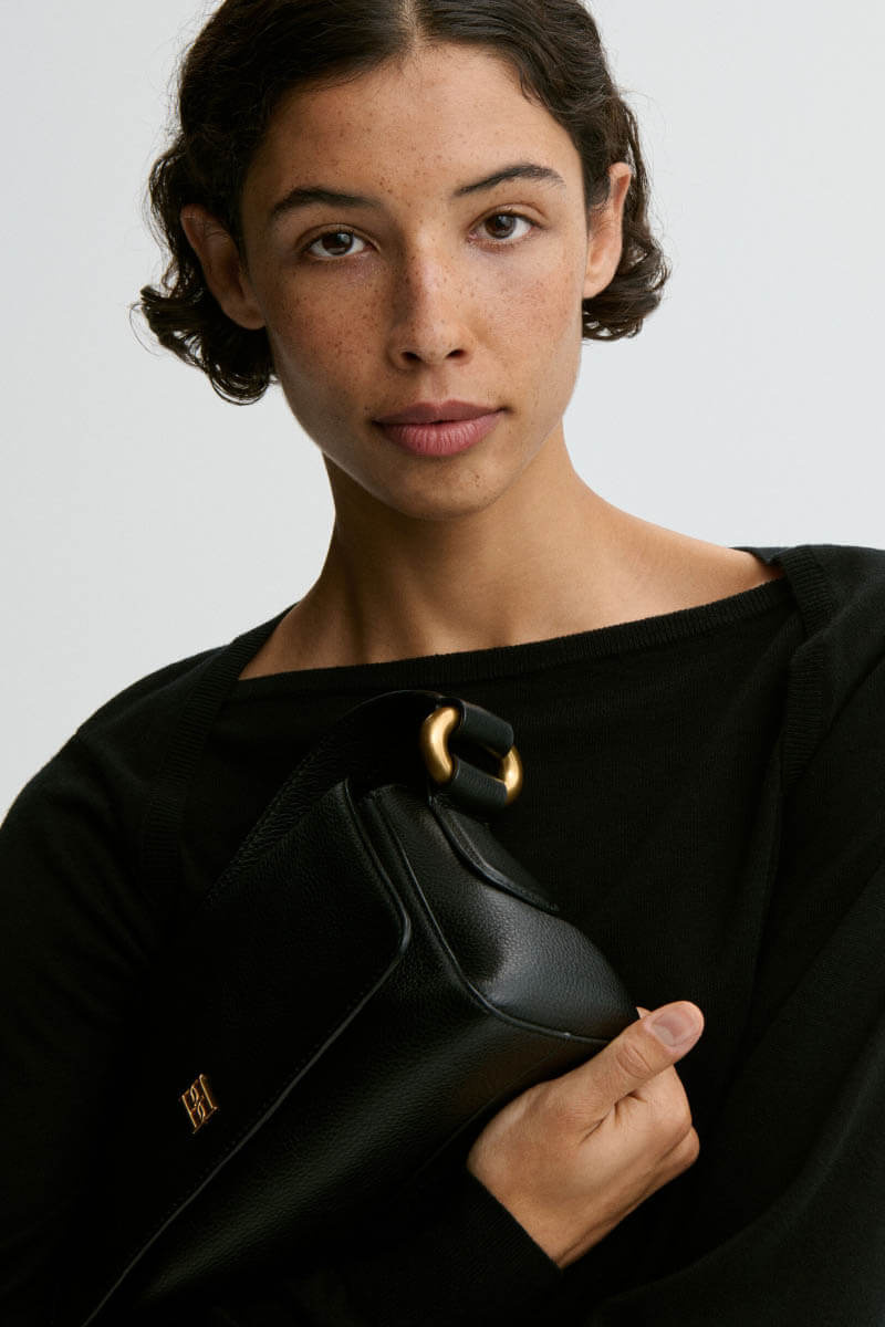En tidlös axelväska som passar för alla tillfällen, dag som natt. Väskan är tillverkad i mjukt, följsamt läder och kan bäras både i handen eller över axeln.