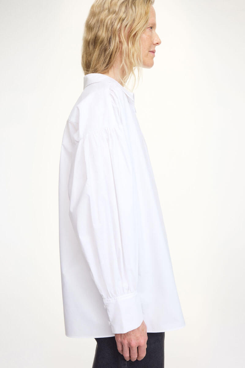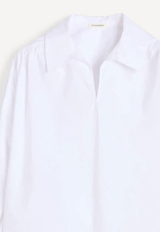 Tillverkad i krispig ekologisk bomull har den en tunikaliknande design med skarp krage, V-ringning och manschetter med knäppning. Lägg märke till den diskreta, broderade monogramdetaljen som ger plagget en exklusiv finish.