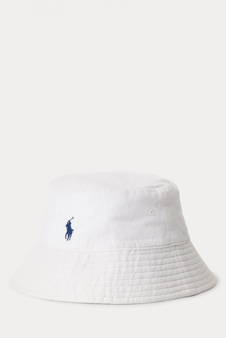Den vita buckethatten är den ultimata detaljen för en avslappnad men stilsäker look. Perfekt solskydd med en broderad logga framtill för den där subtila premiumkänslan. Bär den till allt – strand, stad, festival. En ikonisk klassiker du behöver.Bucket hat i linne med ton-i-ton sömmar och broderad logga fram från Polo Ralph Lauren.