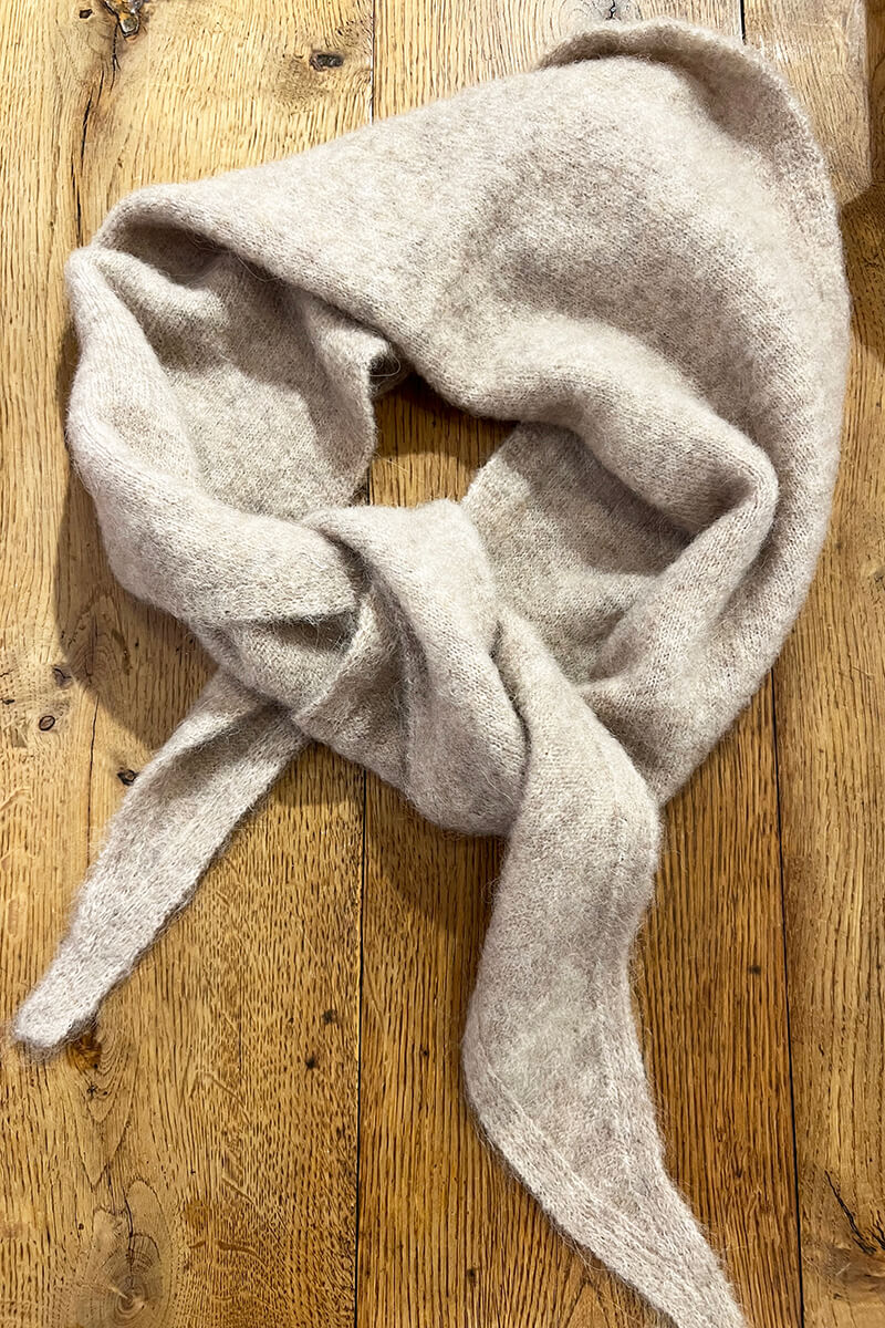 Liten halsduk i en mjuk alpackablandning med triangelform och liten sydd logga från Sibin Linnebjerg.- 48% Baby Alpacka 20% Ull 20% Polyamid 2% Elastan