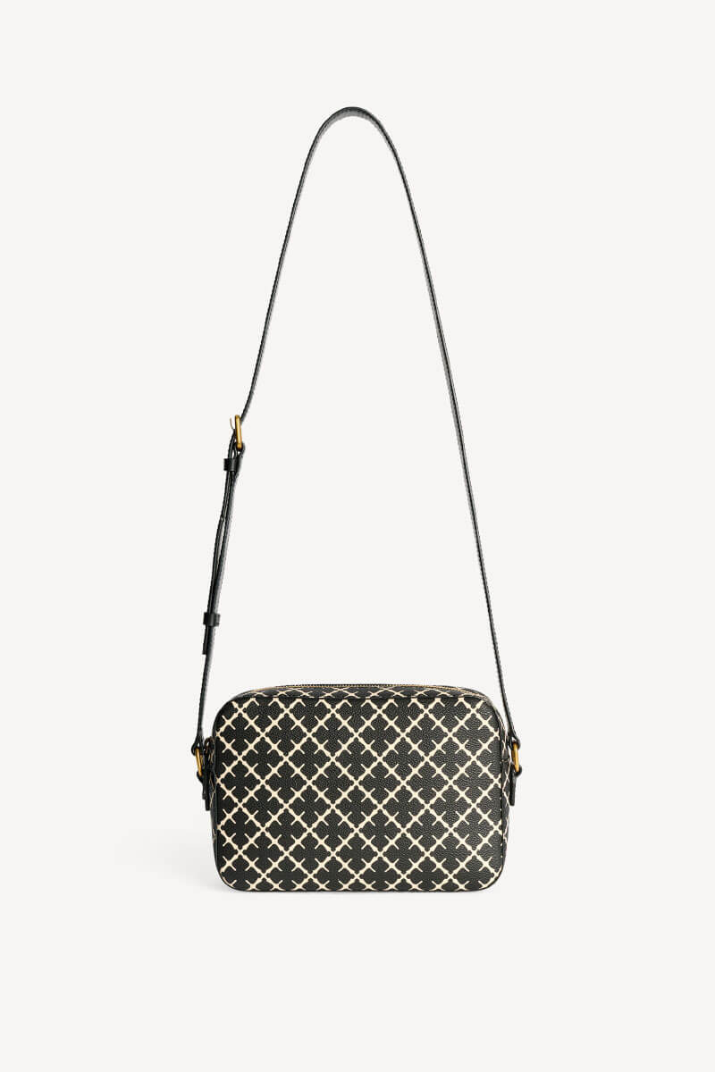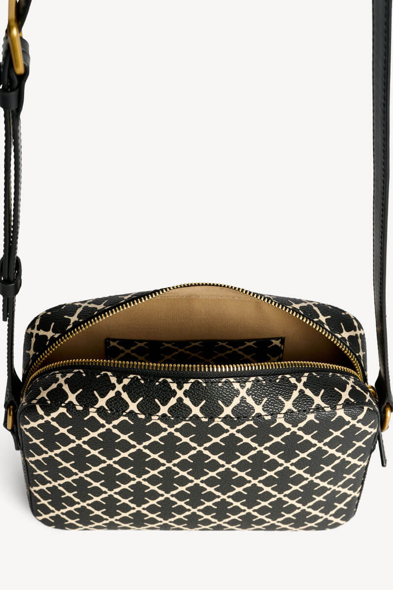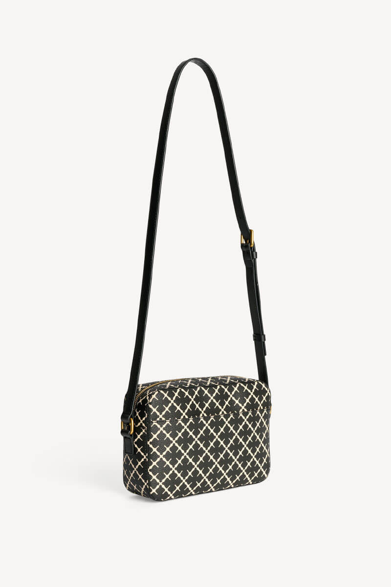 Mönstrad crossbody-väska som gör varje outfit intressant. Bär den över en kavaj och vida jeans för en look som andas storstad. Praktisk nog för vardag, snygg nog för sena middagar.Liten väska med avtagbar axelrem, stängs med dragkedja upptill, en innerficka och logga fram från By Malene Birger.
