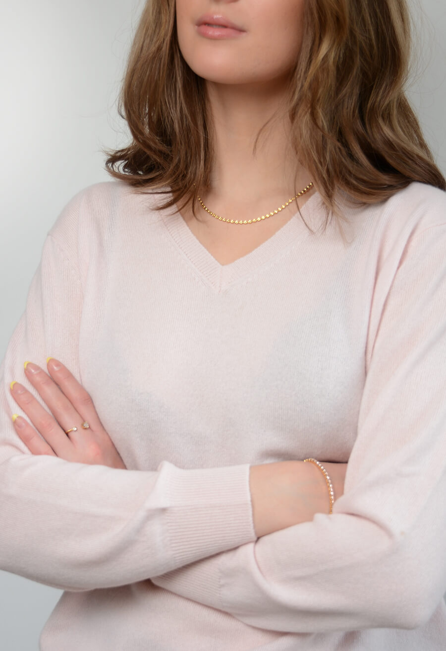 En lyxig cashmere tröja med v-hals och lätt rymlig.Normal i storleken. Ett plagg du har länge och passar lika bra året om.