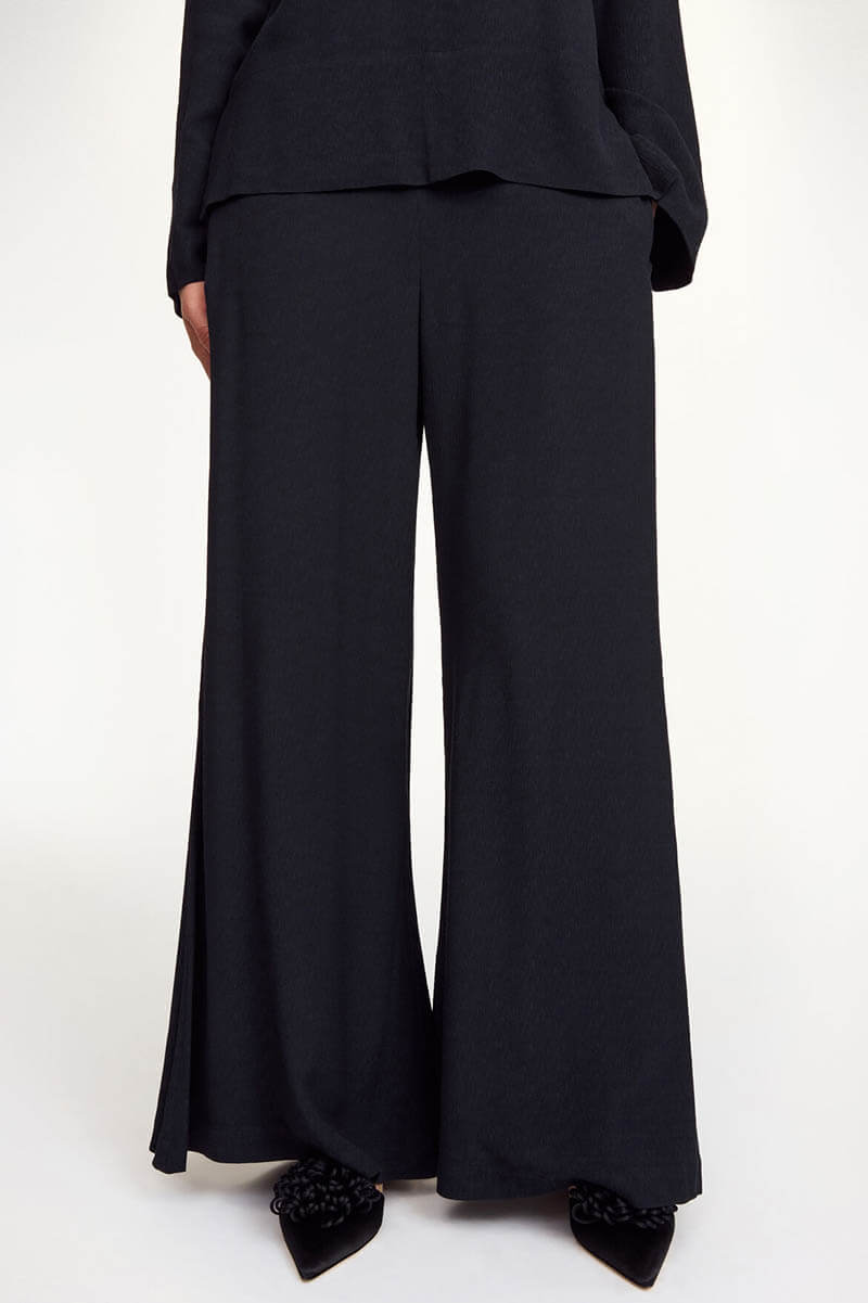 Lucee-byxorna har vida, utsvängda ben och hög midja – en elegant silhuett som fungerar lika bra på kontoret som till middagen. Matcha dem med en oversize kavaj för en modern look eller en bohemisk blus för en mer avslappnad stil.