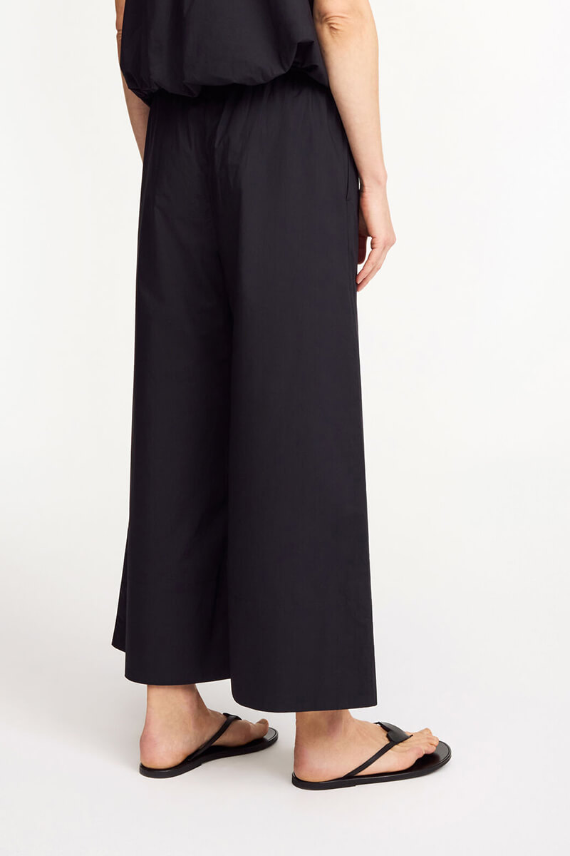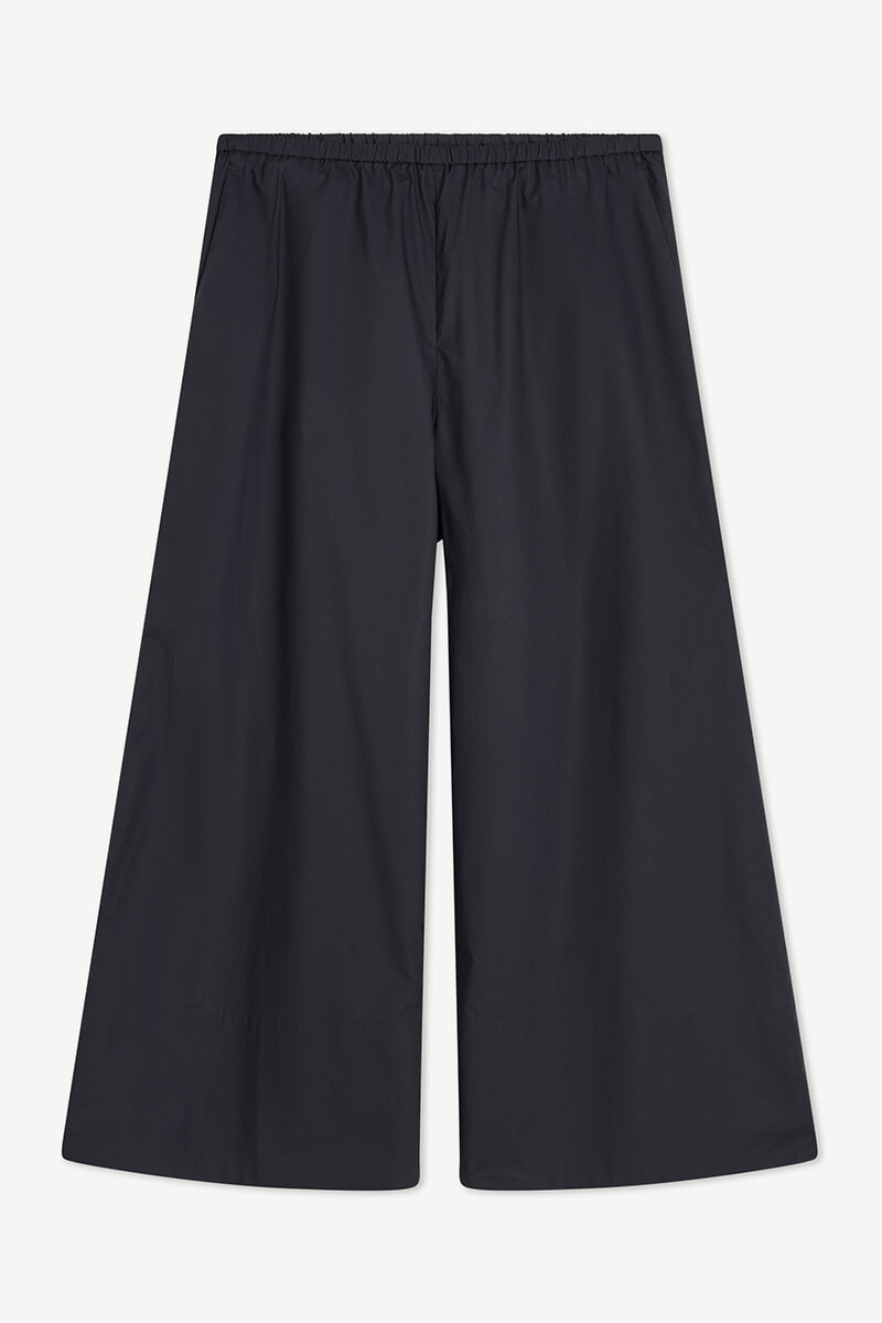 Den avslappnade silhuetten kombinerar komfort och elegans med en smickrande hög resårmidja och vida ben som avslutas i en perfekt croppad längd. Låt den lediga känslan möta sofistikerad styling genom att bära dem tillsammans med långsmala silhuetter och mjuka stickade favoriter eller Derris-skjortan.