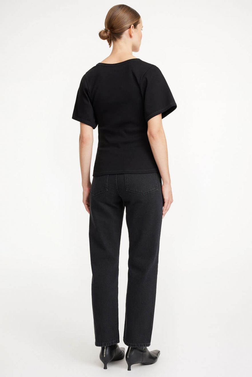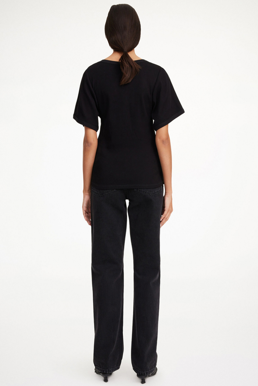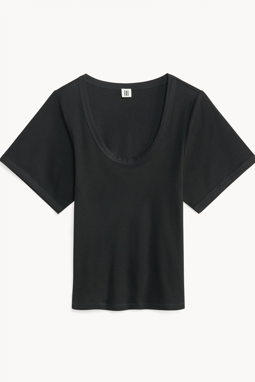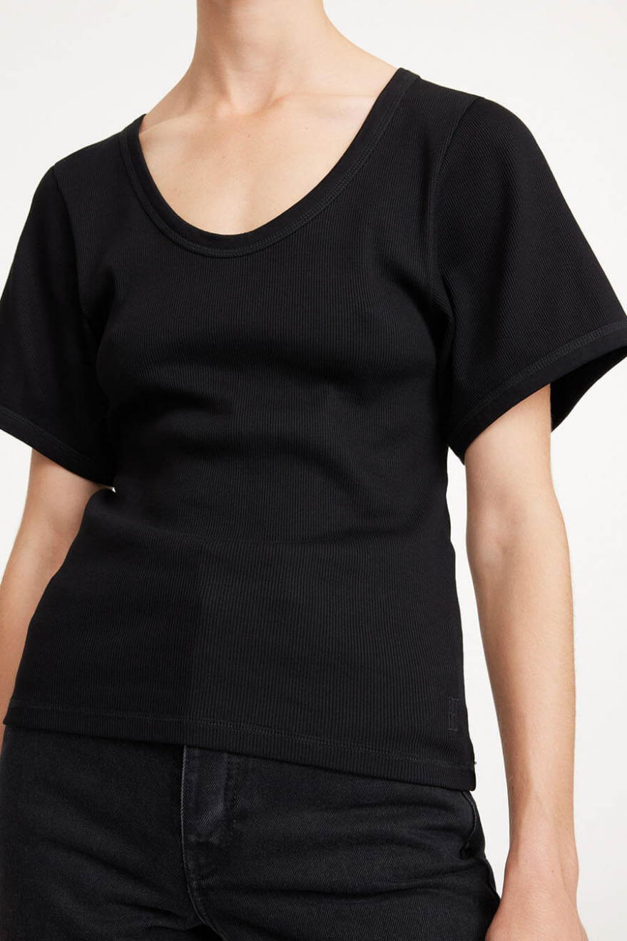 Kortärmad topp i ekologisk bomull med U-ringning, vida ärmar och tajt passform från By Malene Birger.- 98% Ekologisk Bomull 2% Elastan
