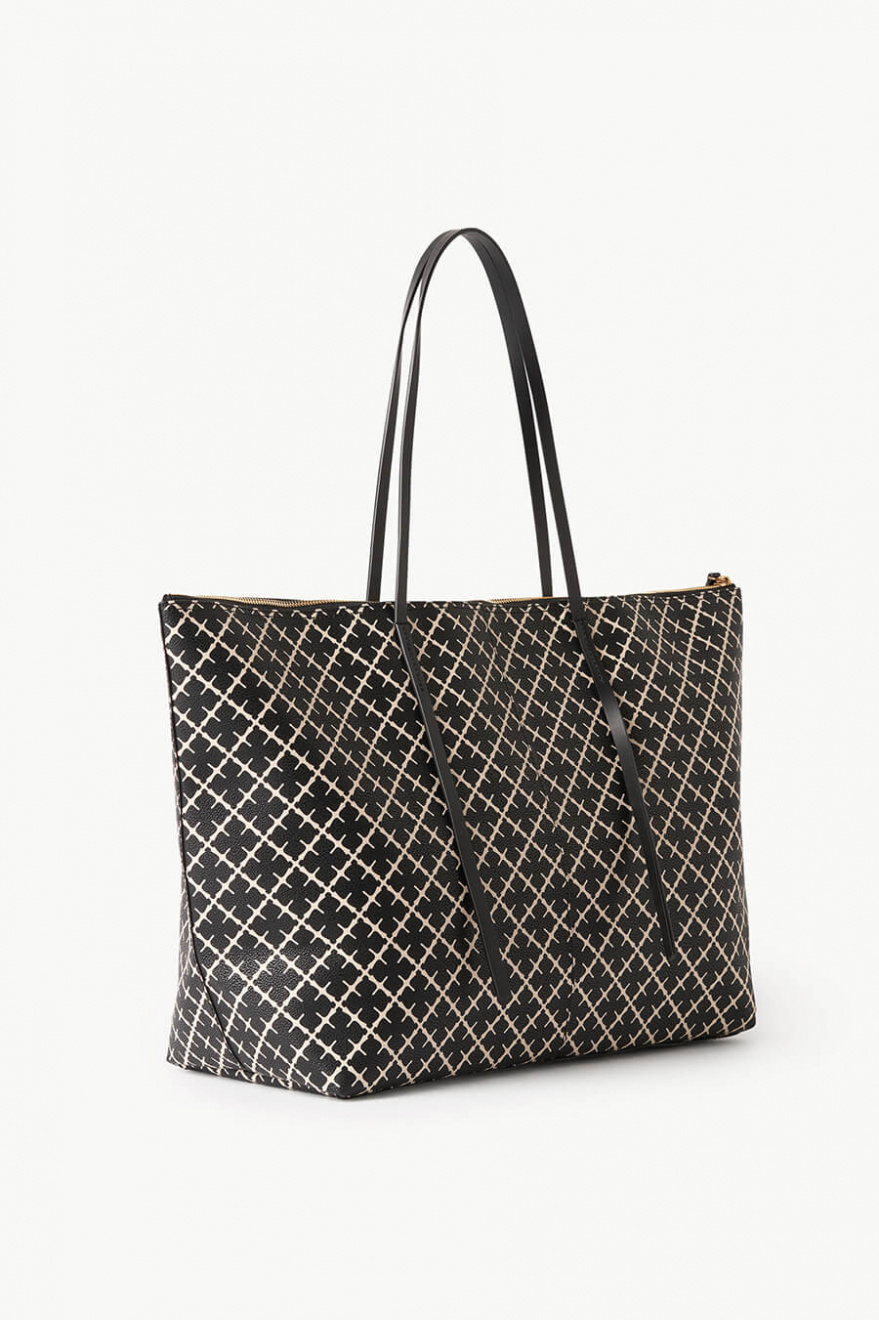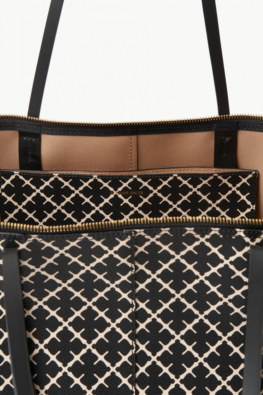 Medelstor tote-väska i Malenes signaturmönster med dubbla handtag av skinn, en innerficka, dragkedja upptill och liten diskret guld-logga fram från By Malene Birger.- 100% Polyvinyl Chloride