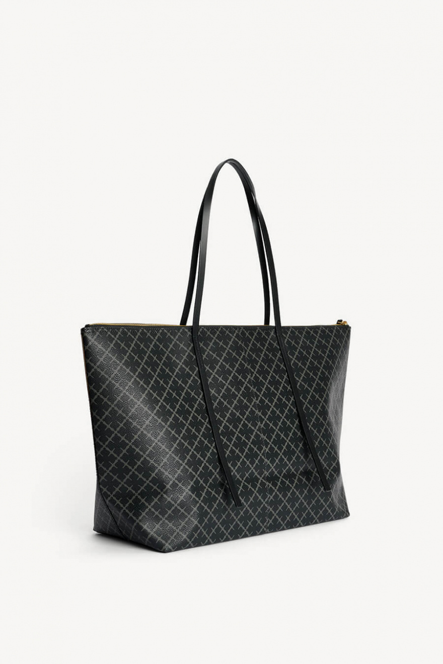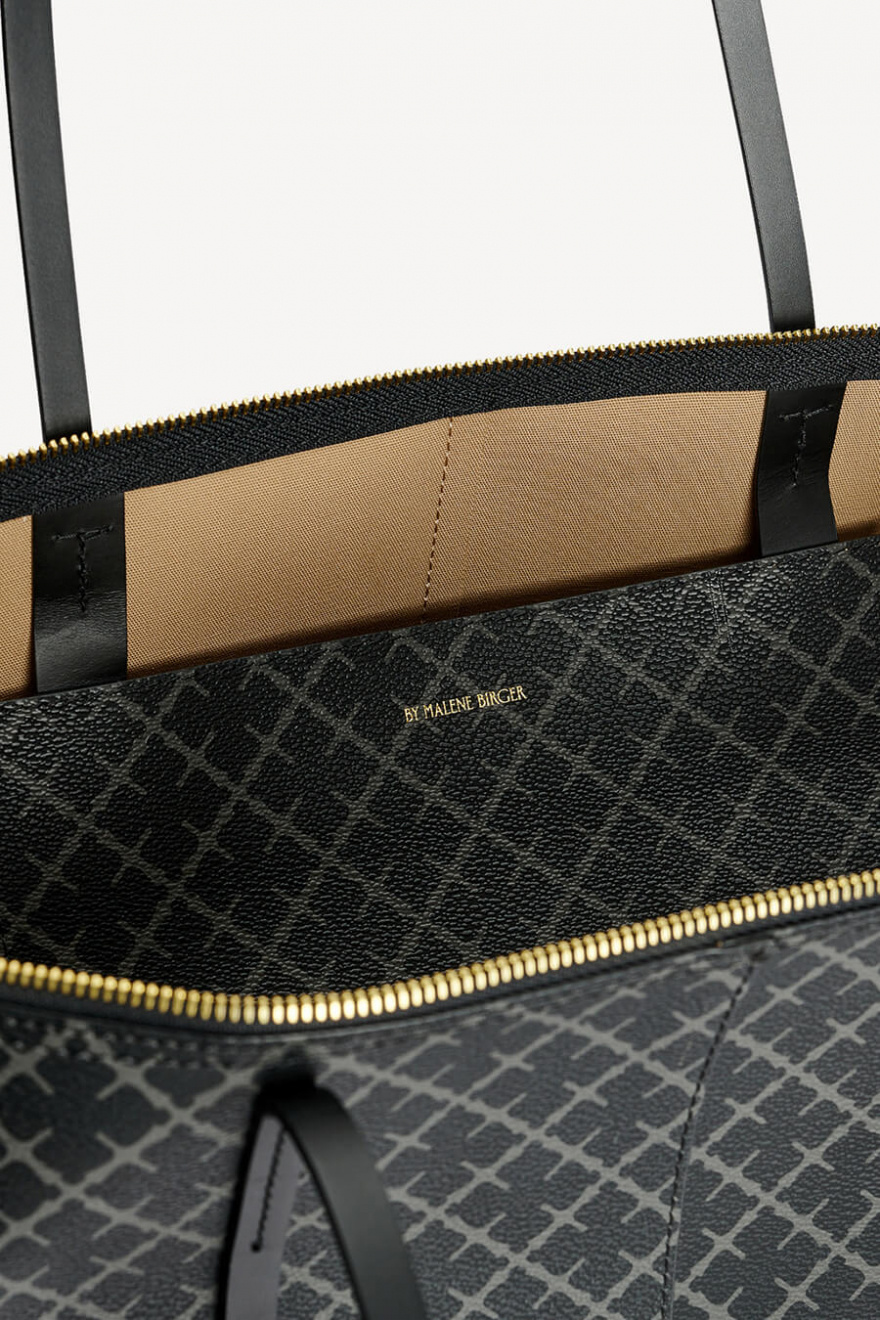 Medelstor tote-väska i Malenes signaturmönster med dubbla handtag av skinn, en innerficka, dragkedja upptill och liten diskret guld-logga fram från By Malene Birger.- 100% Polyvinyl Chloride