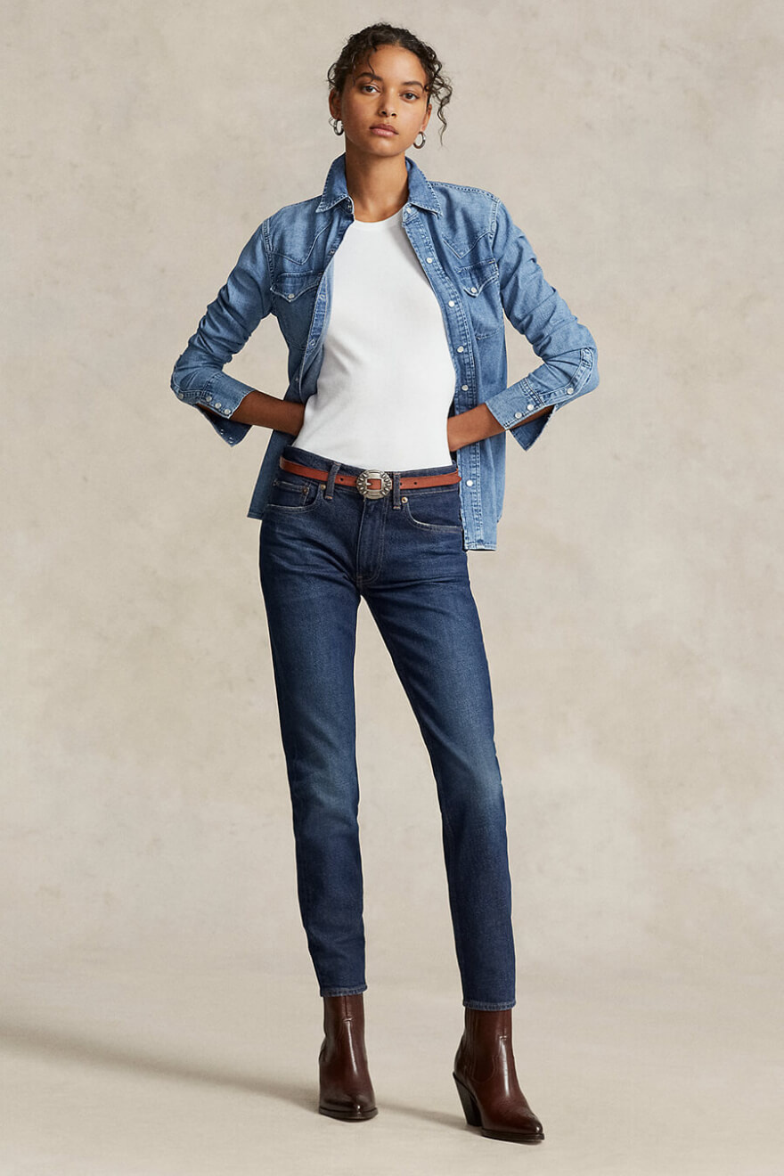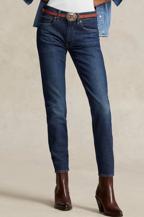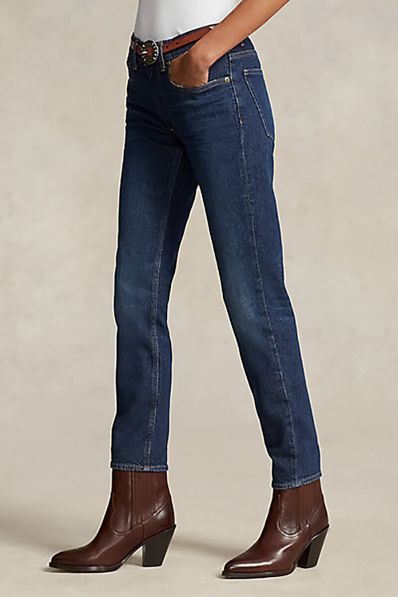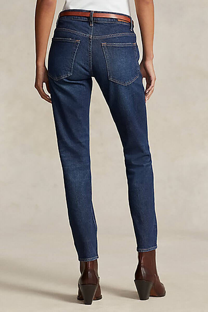 Mörkblå jeans med tvättad finish, smal passform och medelhög midja – som gjorda för både boots och loafers. En stilren bas i denim som jobbar övertid i din garderob. Jeans att leva, jobba och känna sig snygg i.Jeans i en bomullsblandning med smal passform, avsmalade jeans, medelhög midja och kontrastfärgade sömmar från Polo Ralph Lauren.